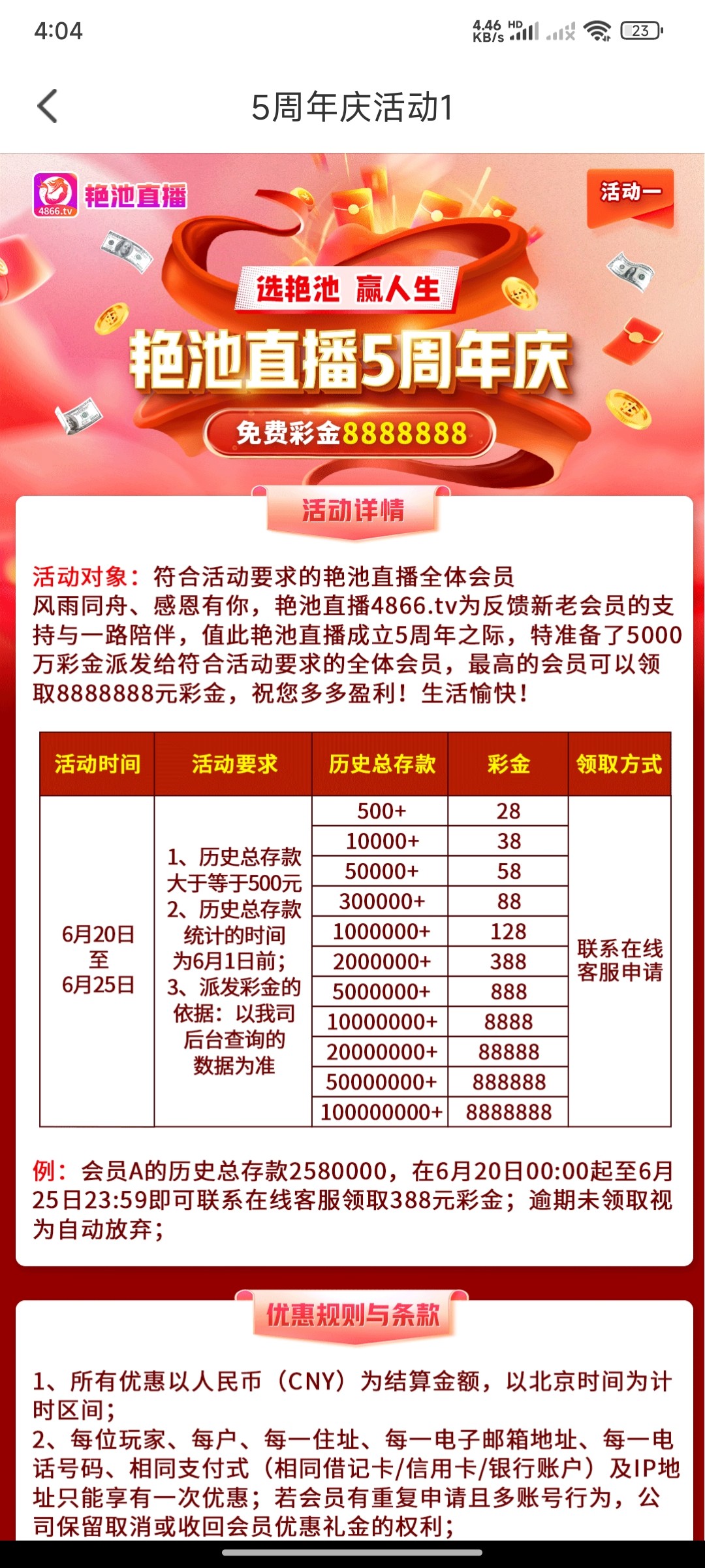 艳池历史充值领彩金