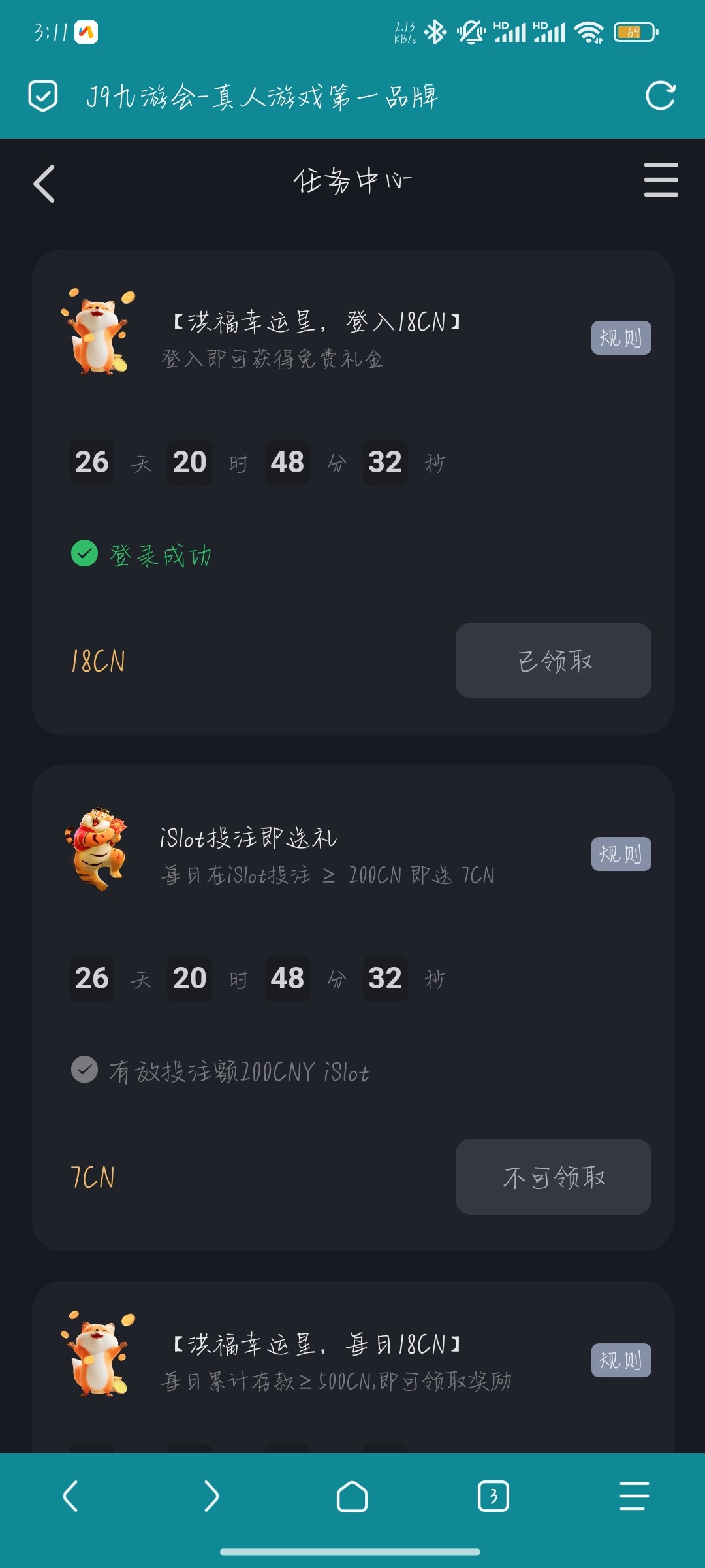 登录后在我的-任务里面领取j9.com或者https://m.j98193.com/member