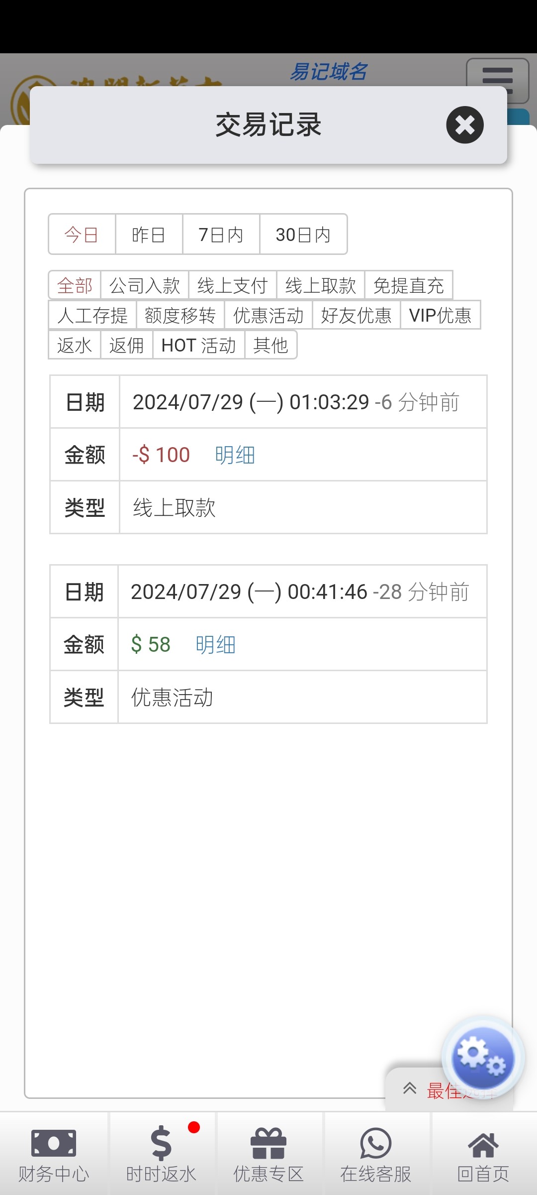 刚刚8558签到2块钱玩日月星辰0.4一拉300倍余额里面50我就退出来充值50进去 充值好账号里面刚好100块钱然后又进日月星辰把刚刚暂停的免费继续打 一下子上到400多块钱