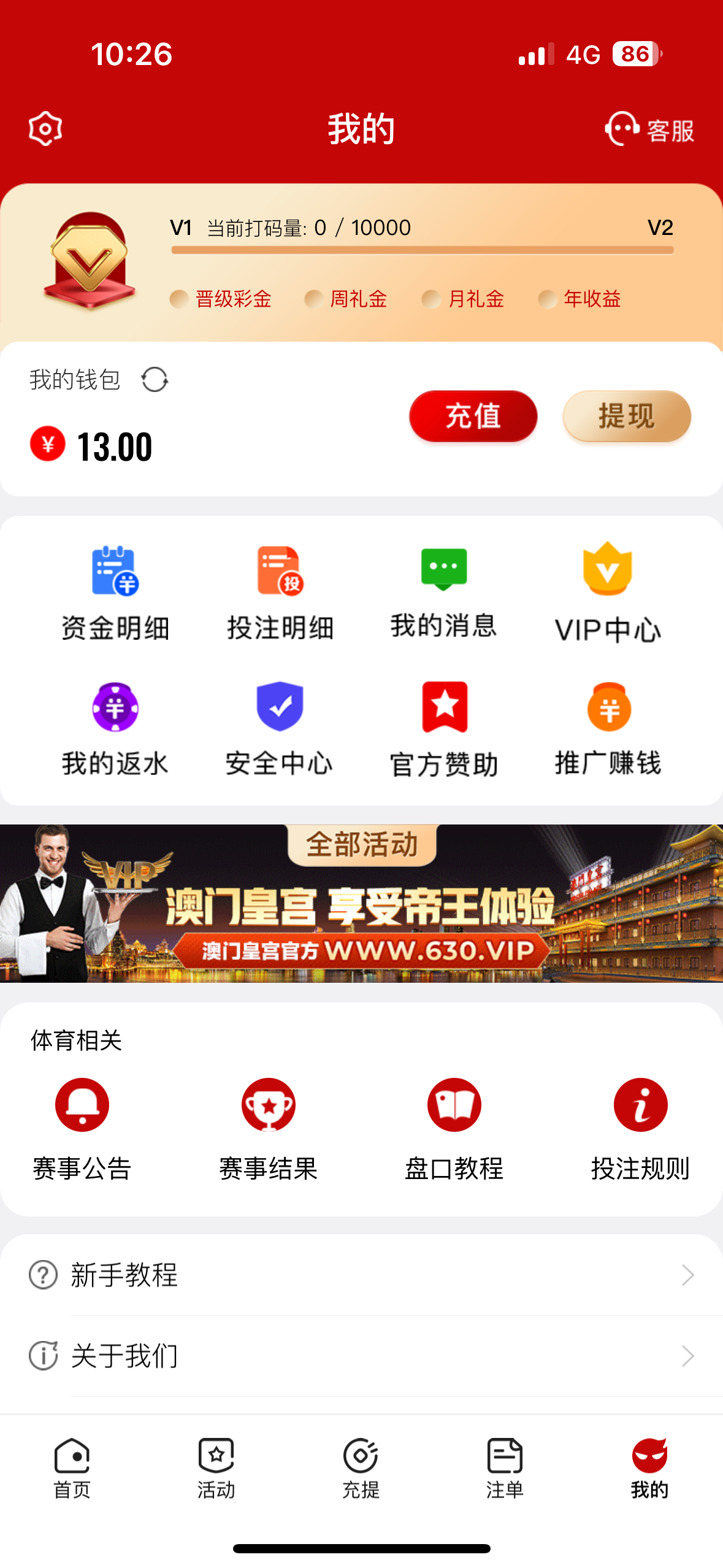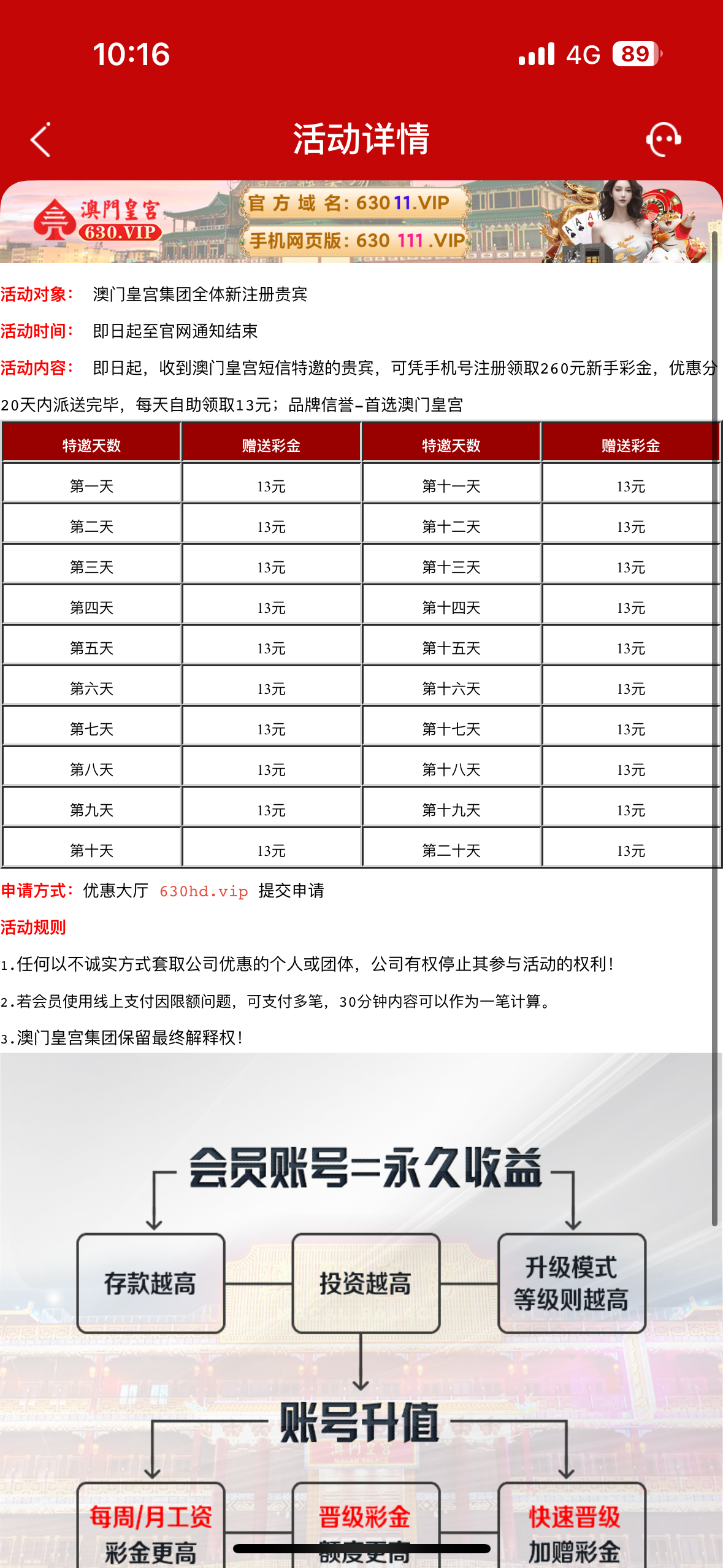 收到短信去领每天13