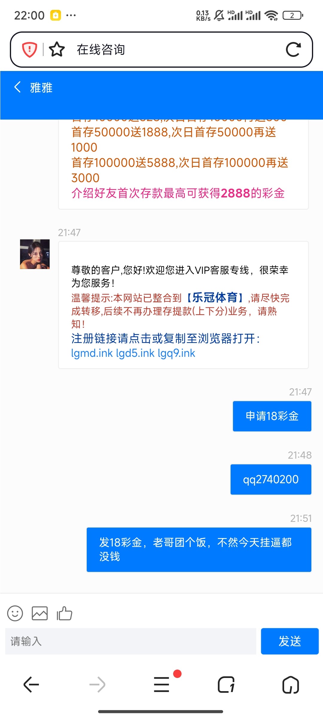 被拦截客服送18彩金