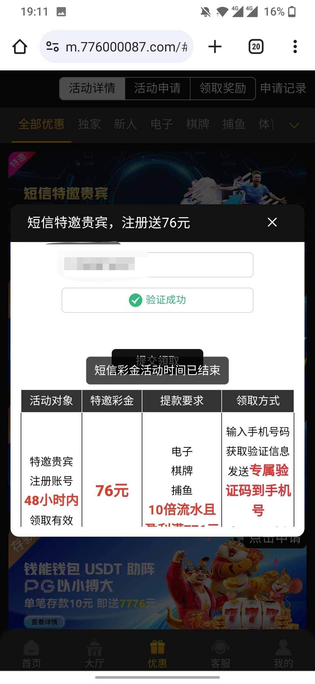 提示短信彩金活动已结束