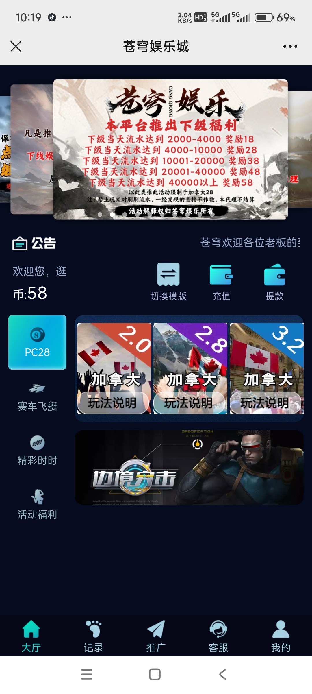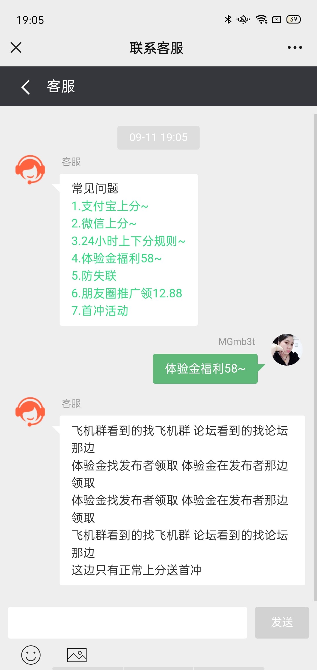 新用户注册找在线客服发送领取新人体验金,人多客服回复有点慢耐心等待即可58打到588下88。具体自测切记勿充值。