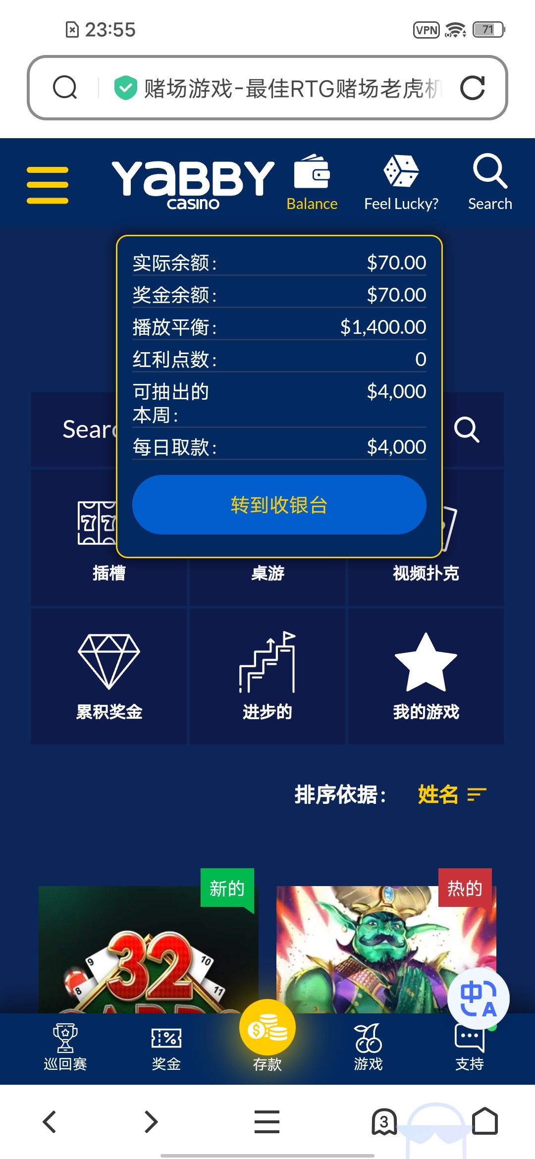 没水  400流水杀完  0.5美元进免费 免中免给15块   最低给0.2  比麻将还离谱