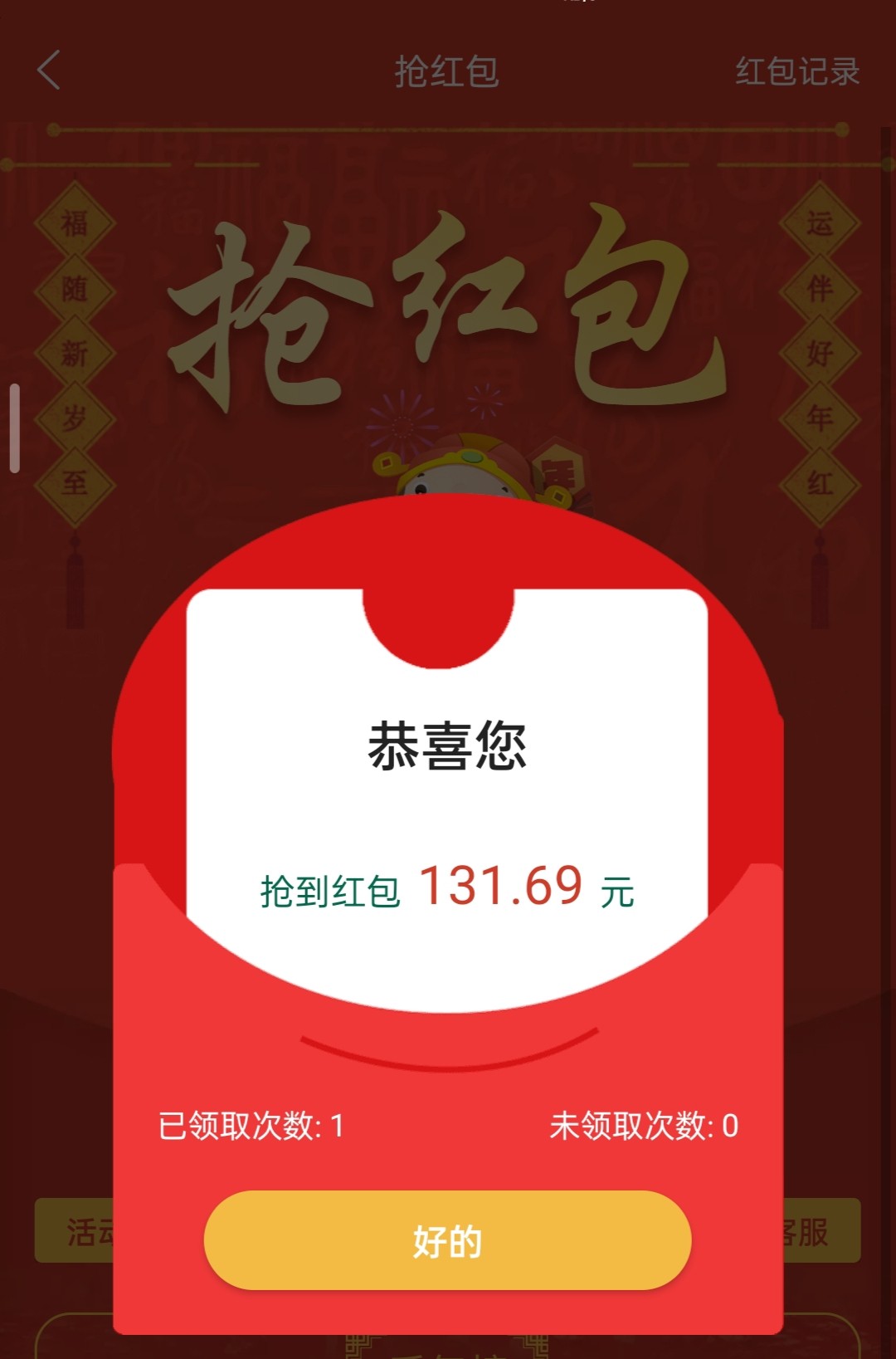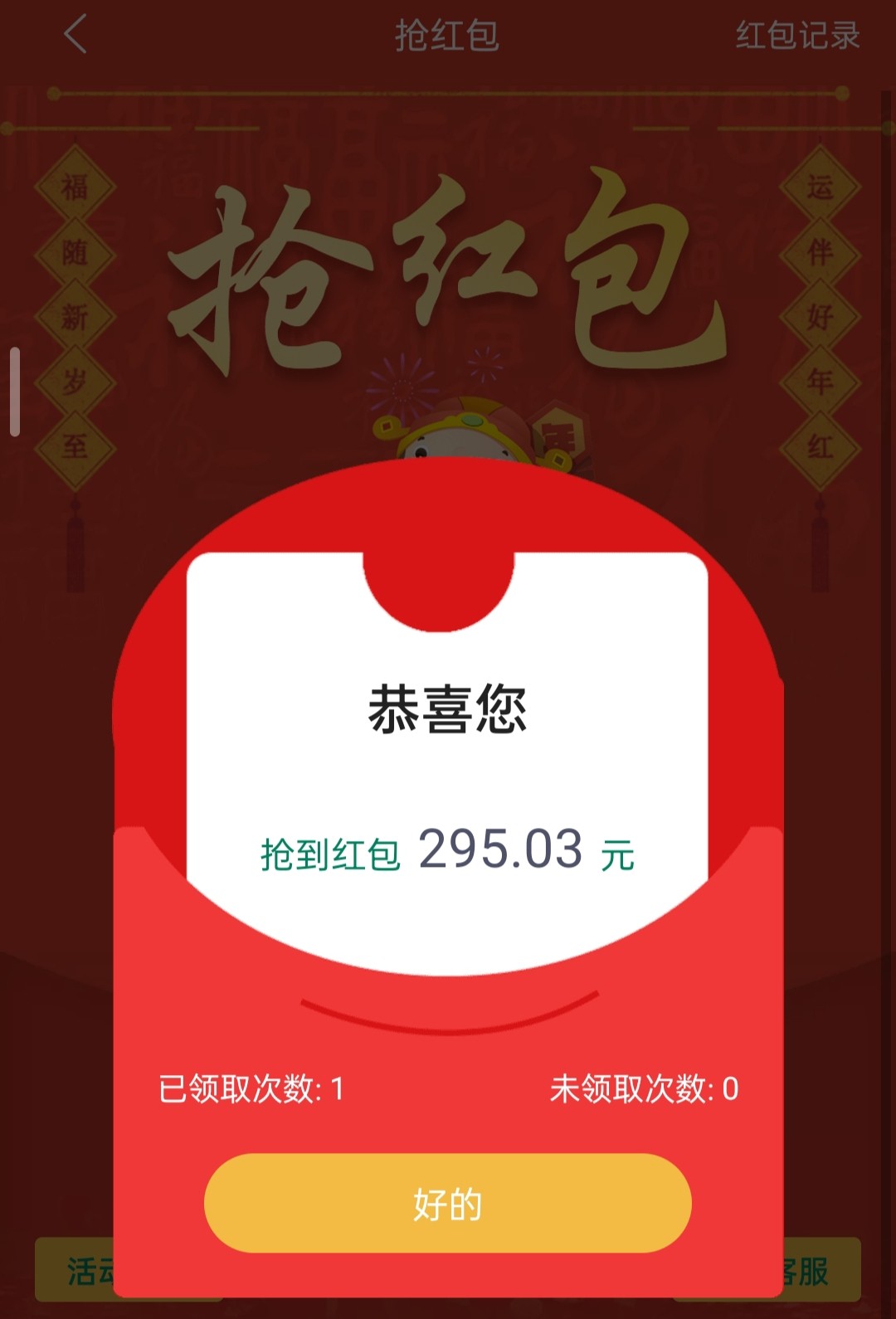 011前两年抢到过一次10.11然后加了100倍,去年也抢到一次10.11然后说我活跃度不够不送,草泥马