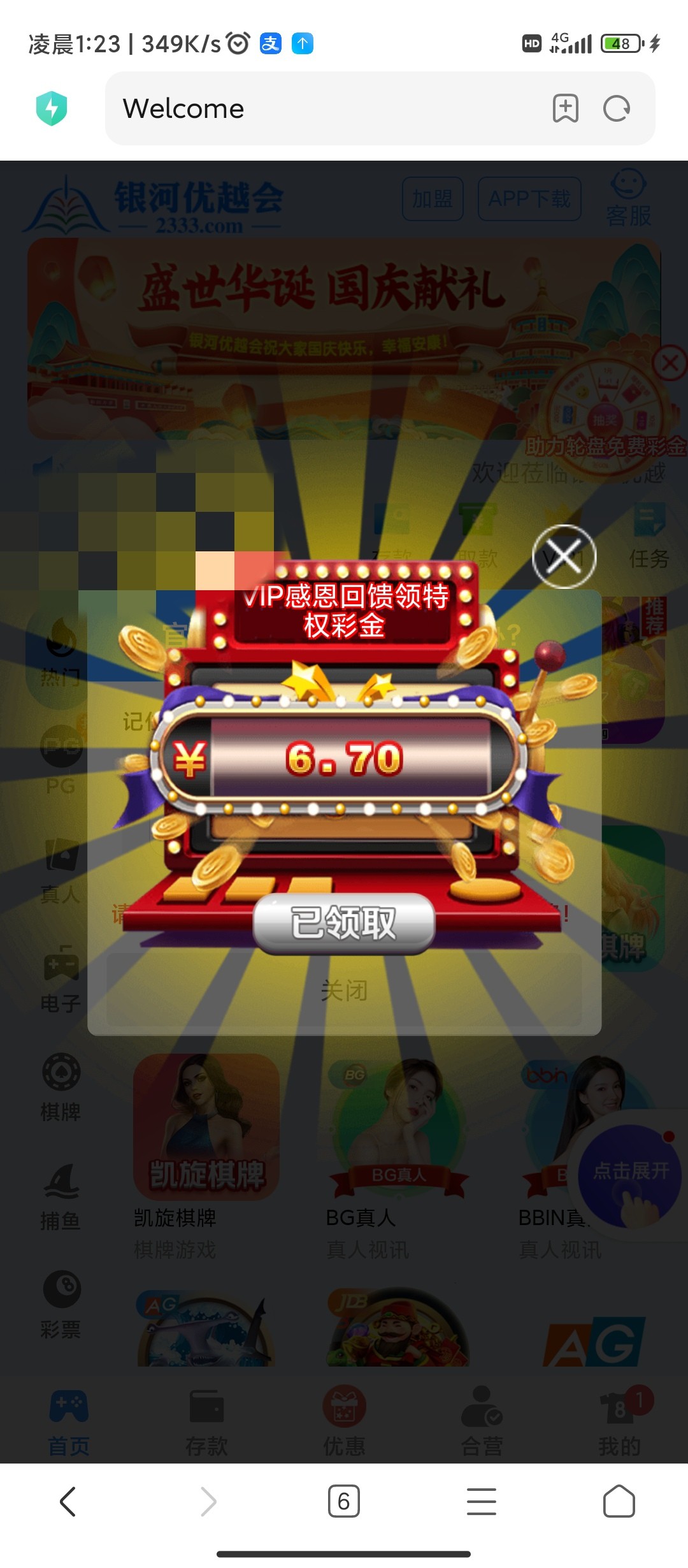 优越会国庆回馈彩金