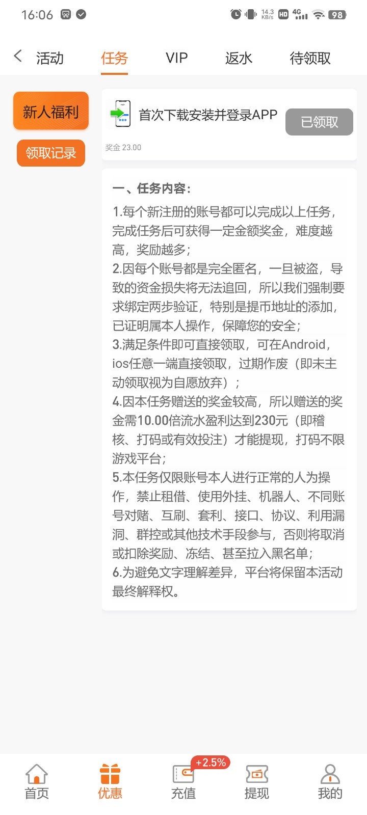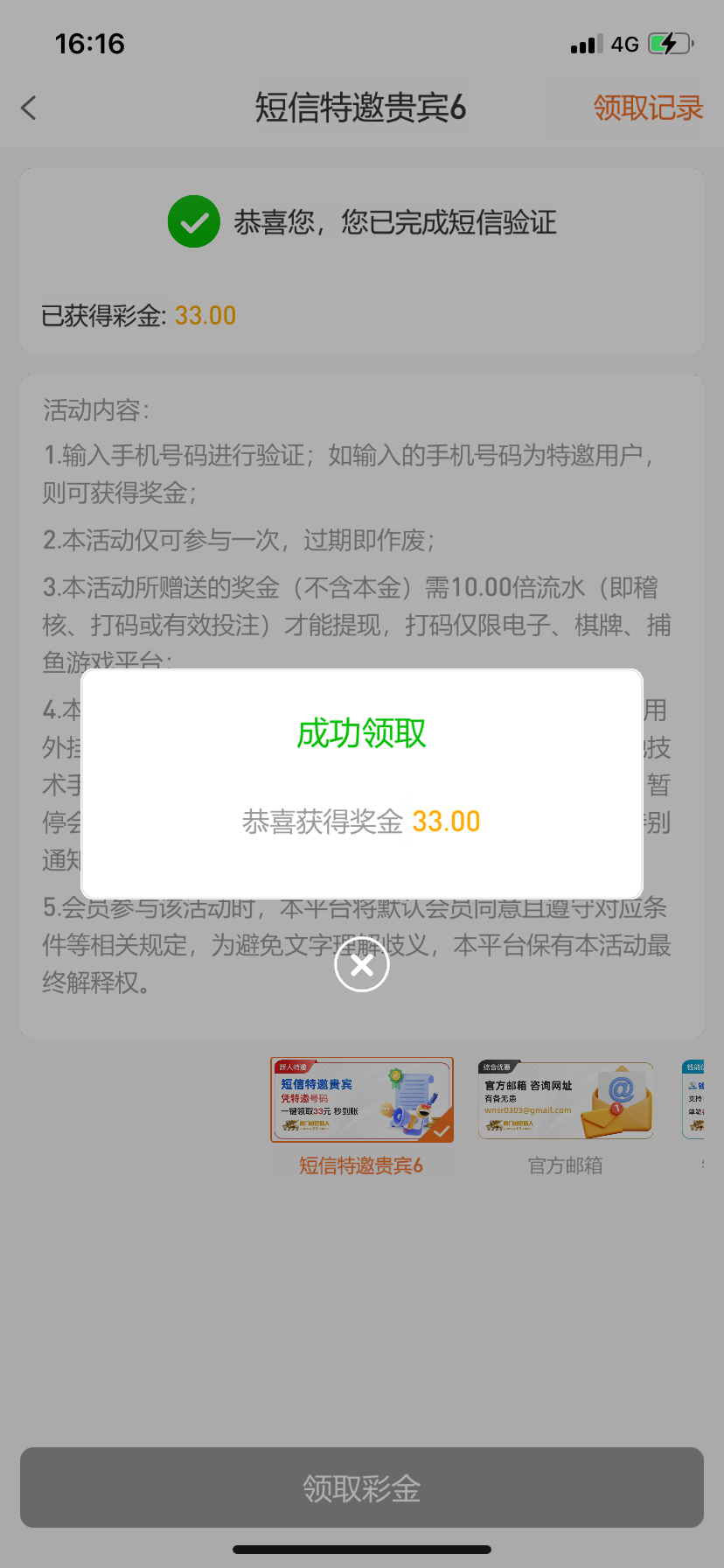 特邀用户注册绑定手机号优惠里面自助申请33彩金10倍流水,不是特邀没有,具体自测吧。