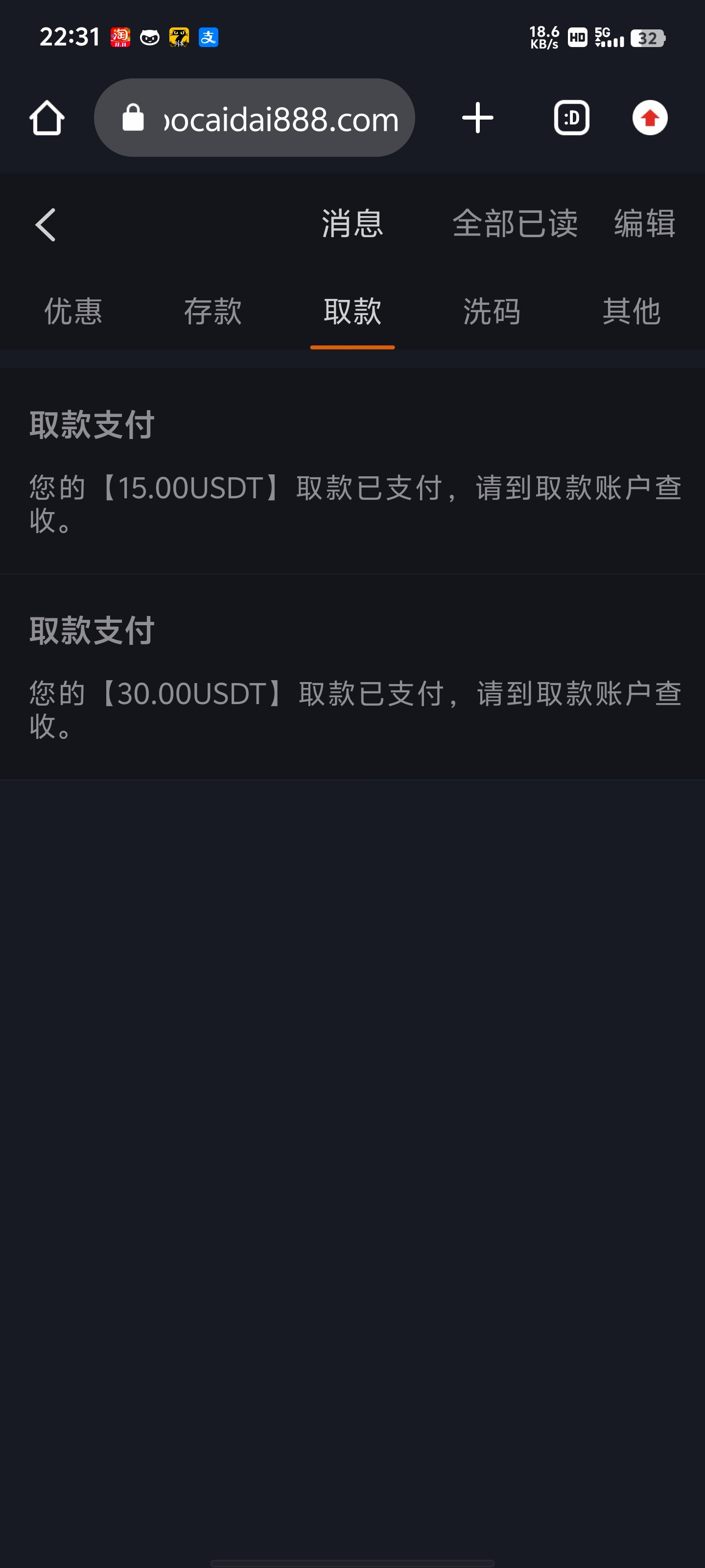 我充值了50给我出了,就是提现过了一天才到 u只能提u