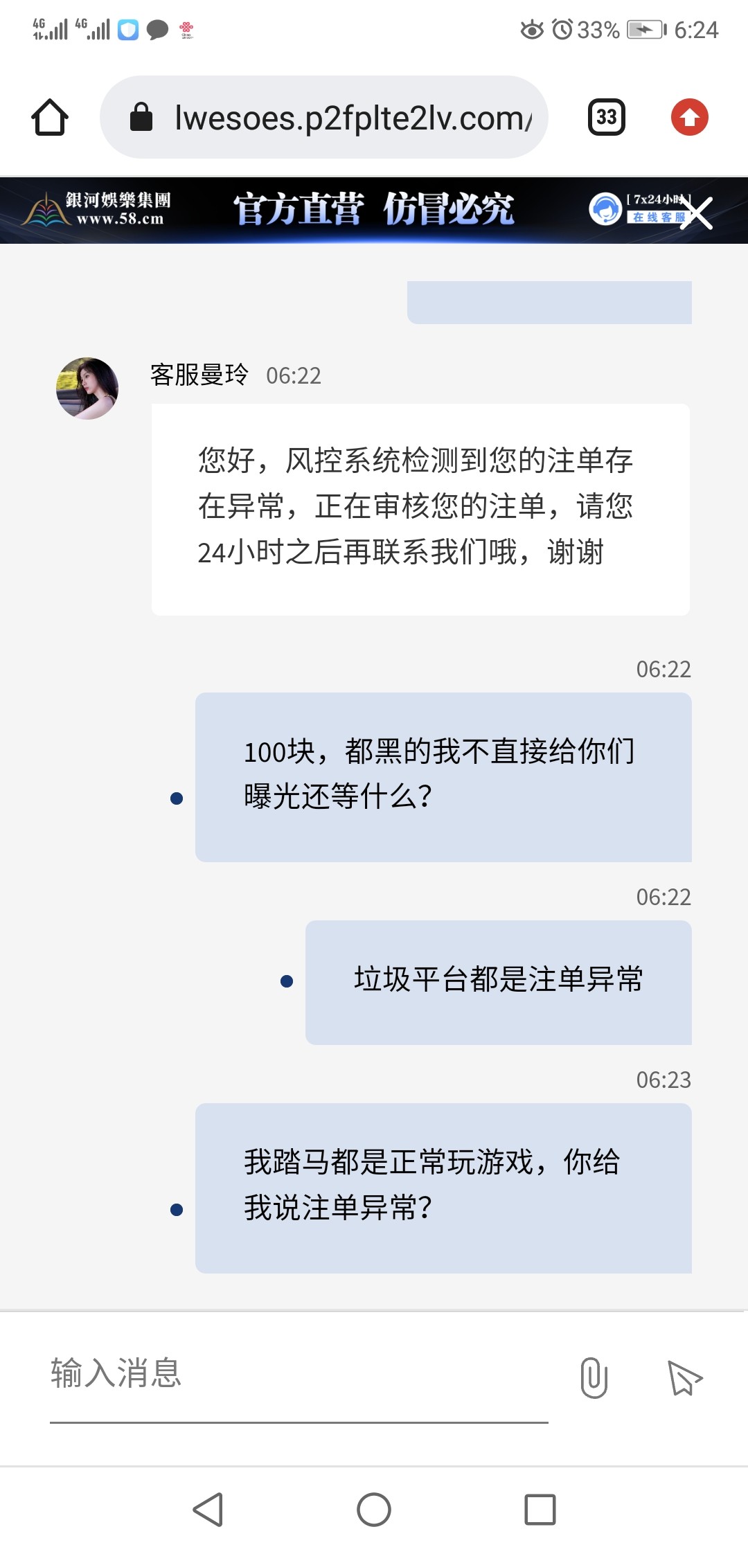 充值了100,提款100给我说注单异常。