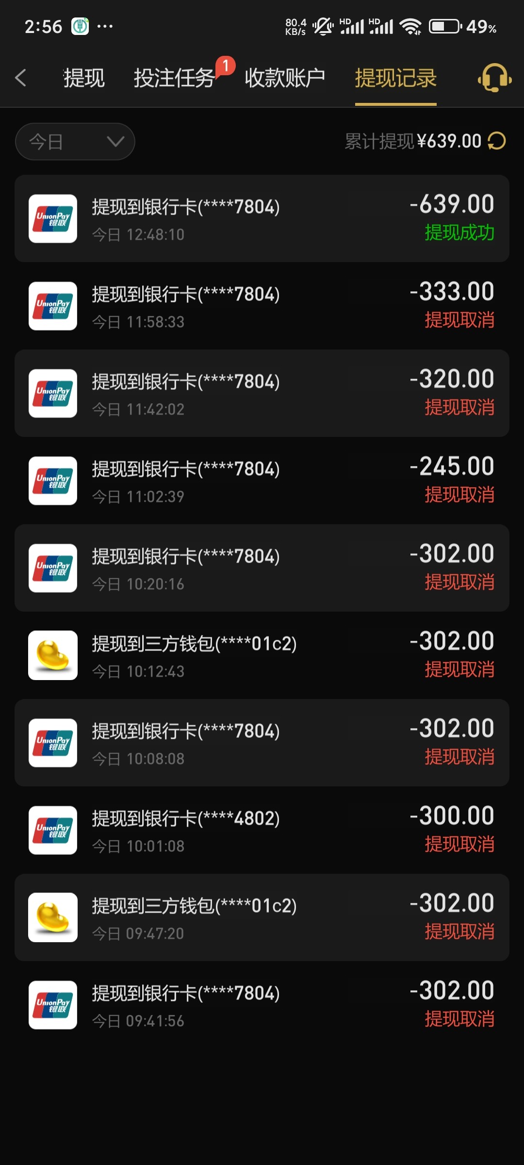 烟鬼502 180.我现在413一直提现取消,很烦,人家800都出了,就不给我出