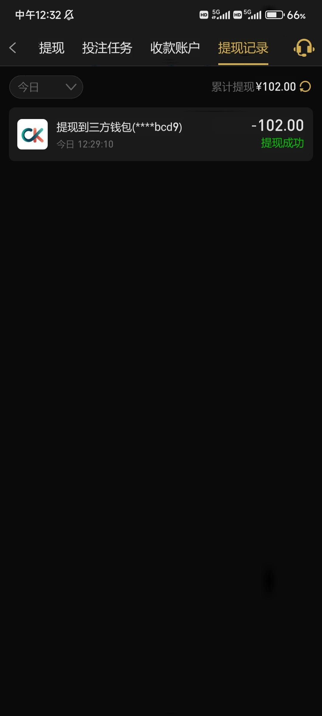 提现到账没,到账我就充值了