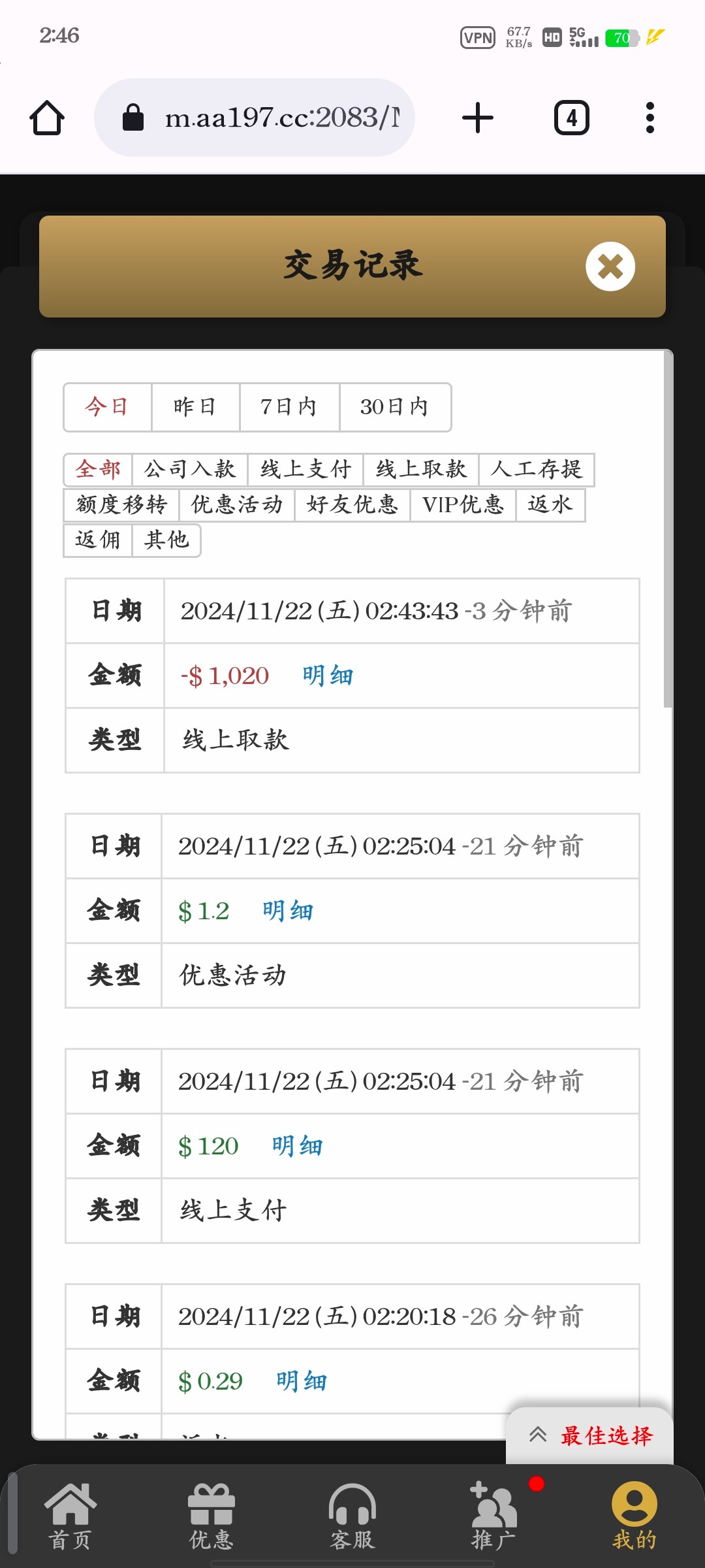 今天最后500,充了400百家乐小打居然没有杀我一直连中,回血1000
