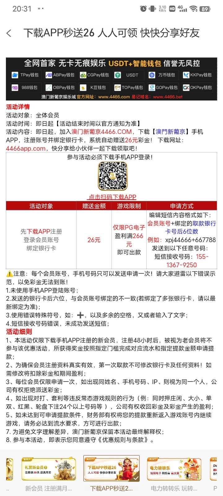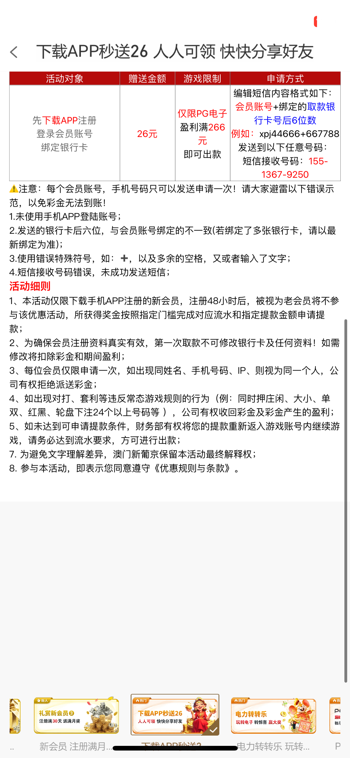 注册绑定银行卡和手机号去活动那边按照他格式来发就好了 没打出来还不知道黑不黑 还没有撸过的可以试试看,撸过的无视短信链接  http://u5a.cn/0SPdw