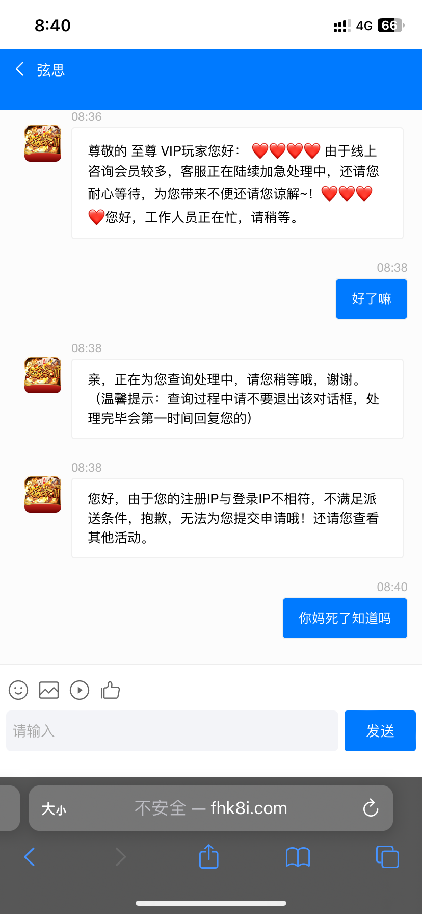 等了两个小时来一句注册ip登录ip不符合