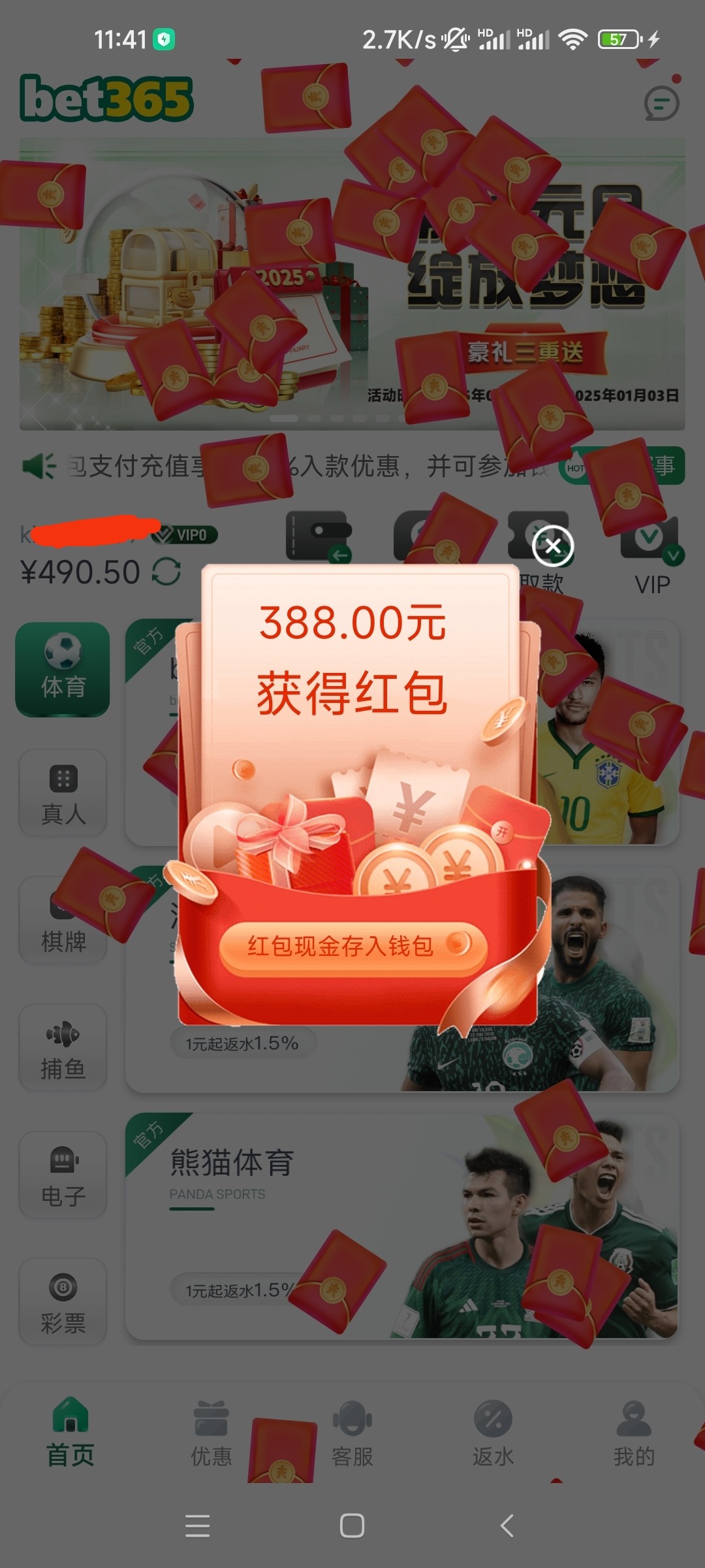 fsc324713 又可以领388彩金了昨天充了100今天领了388打上了1000已到账