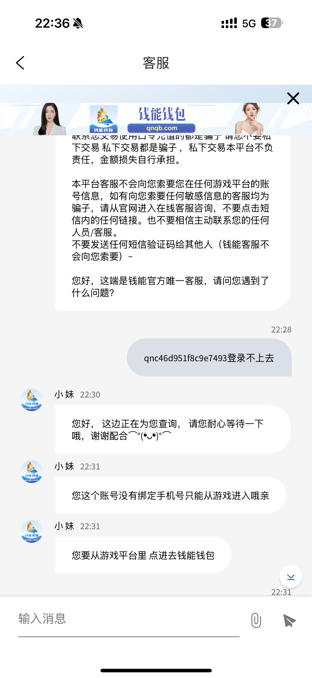 联系了钱能的客服 说手机号没绑定 登不不了 7k不是700当喂狗了认栽