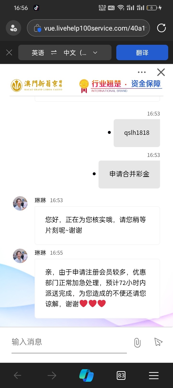 4647这个台子合并了走链接注册绑定信息找在线客服申请合并58彩金200提现,具体自测吧。