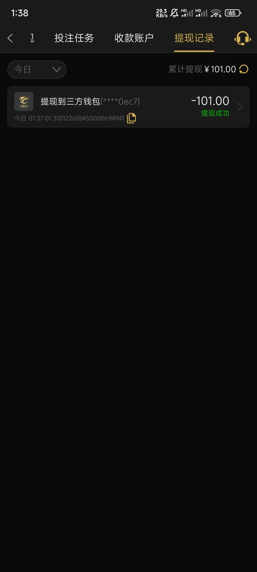 打了3个号出了300到账很快
