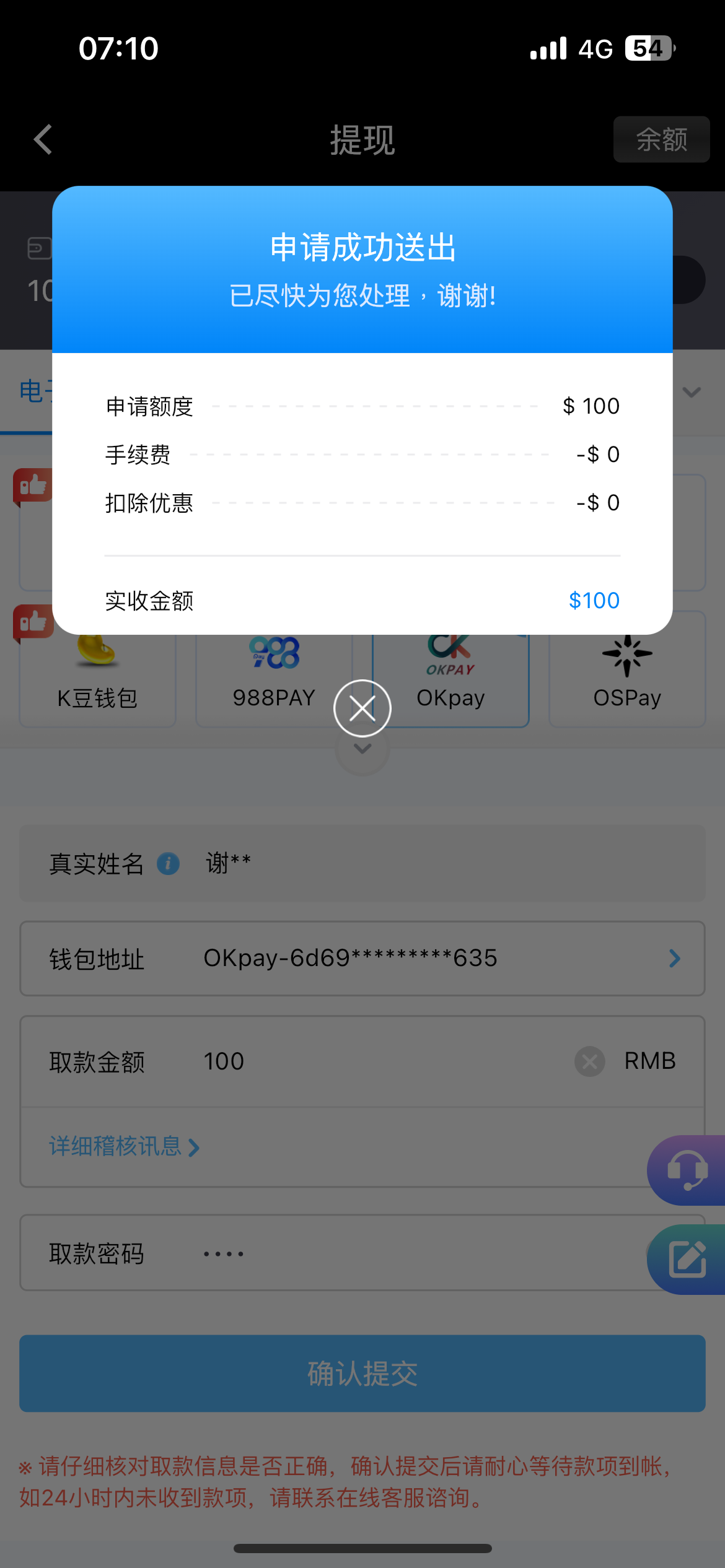 虽说充了50说我多ip,但是裸打出了200,出款挺快 多谢老哥