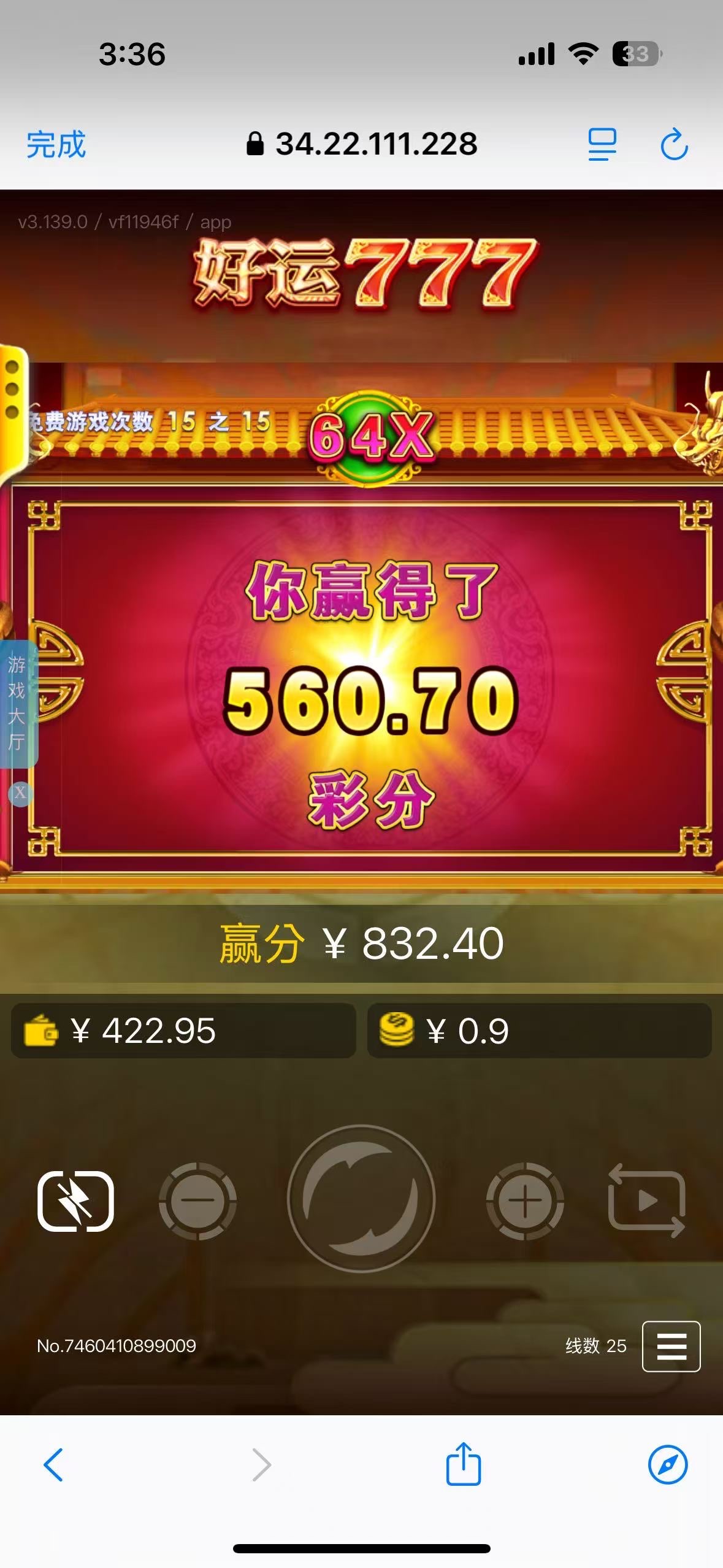 当时冲了三百送五十八 打到四百跑了 零头看着有点烦人 去玩一下好运777 开的九毛钱 拉了几次就来免费 然后免中免 来了三次 连了四个柠檬四百多 我人都傻了 倍数最高64倍