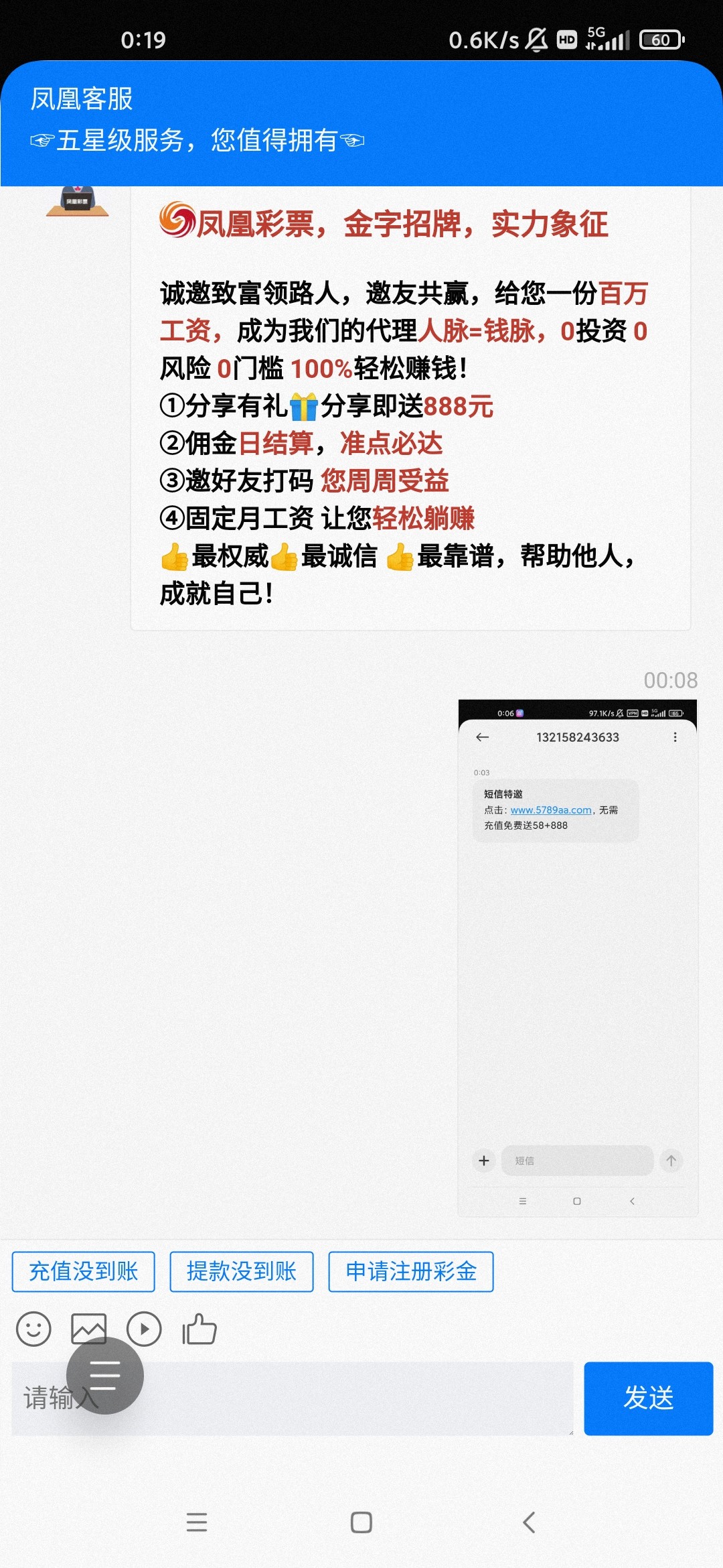 今天凌晨收到的短信,收到后找客服秒送