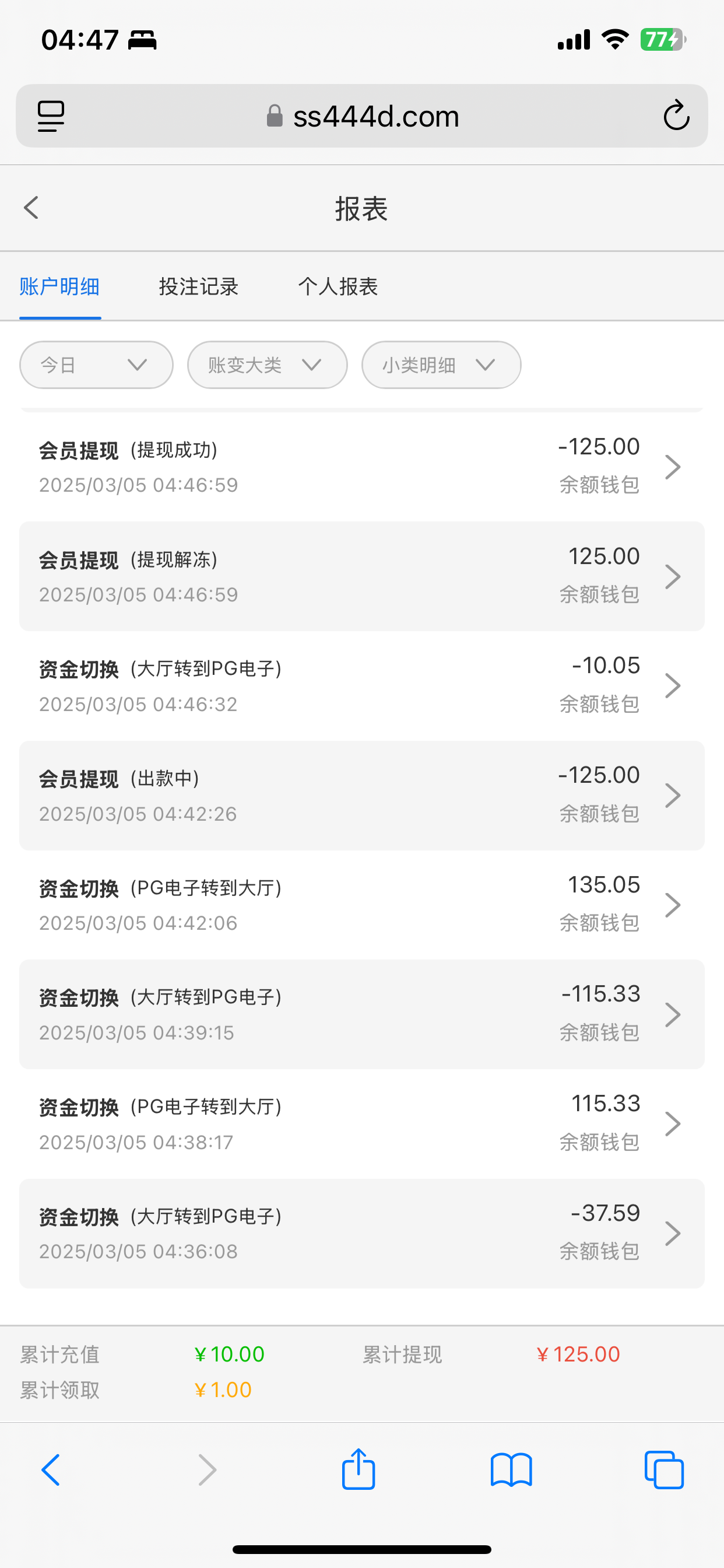 充10块大水,出款了