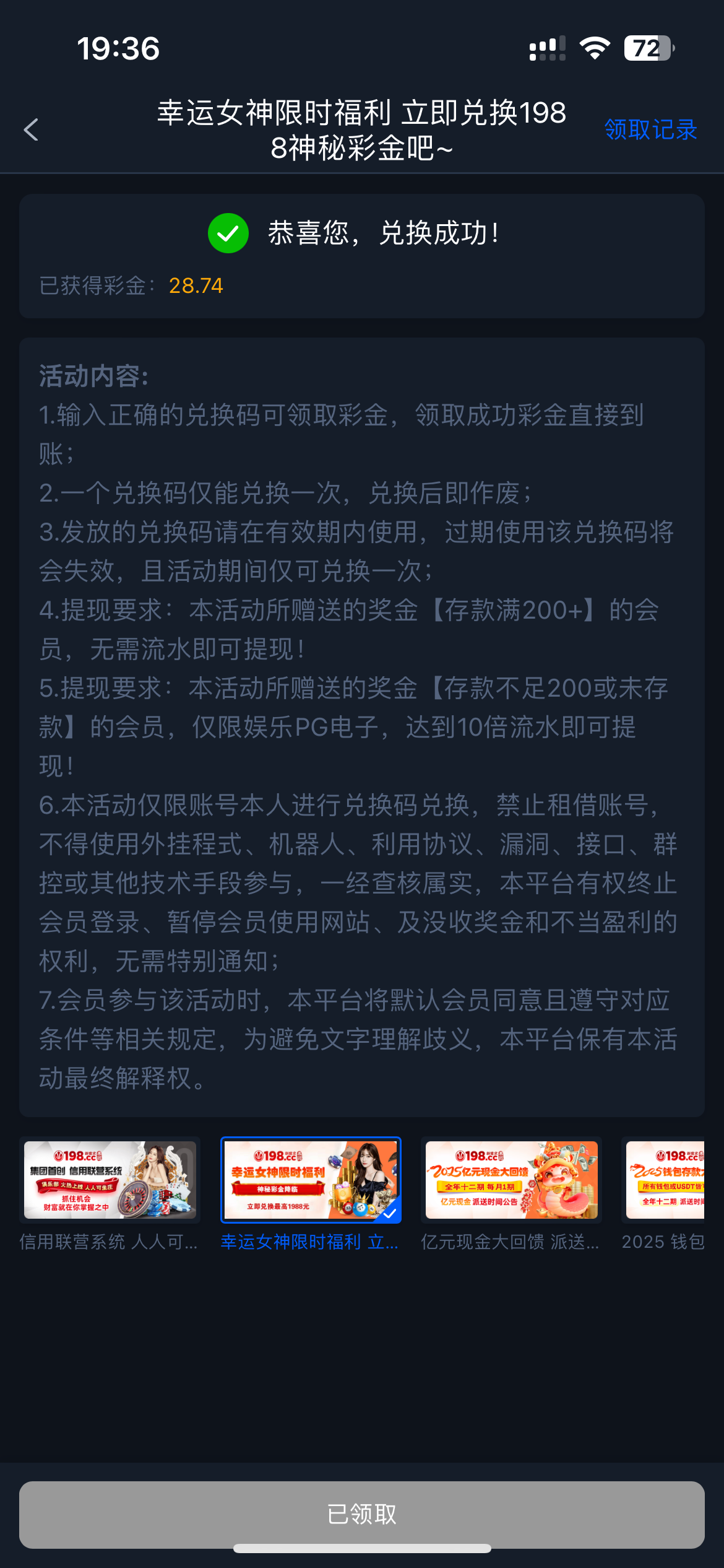 198回访彩金彩金码领