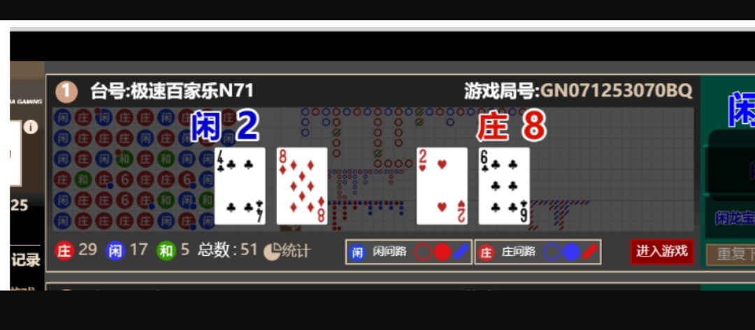 出生论坛这个ag二个视频说卡顿黑屏切换电子牌其实是p的局号我也找其他平台专员查来是GN0712530704U闲七点庄八点,二个视频第一个没有下注那个是p的,开完一局牌结算了是会跳局数的比如u就马上跳v,1就马上跳2那个视频没有从倒数13到12都没有。自从我看到这二个视频我是不是塌方了从2017年接触ag也下来五万一把连输十把那天挂壁22w。所以这三个夜晚一直去论坛希望找到有老哥下注那局的路珠,第一个视频是不开的前面一个蓝结果美女荷官是庄35八点怎么可能是闲。真踏马累给论坛老哥装逼几天熬夜。