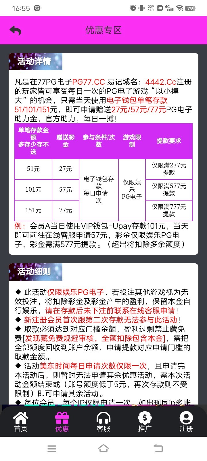 和77PG一样的活动,拉进免费的不查,经常这样干只可惜现在不给我申请以小博大彩金了