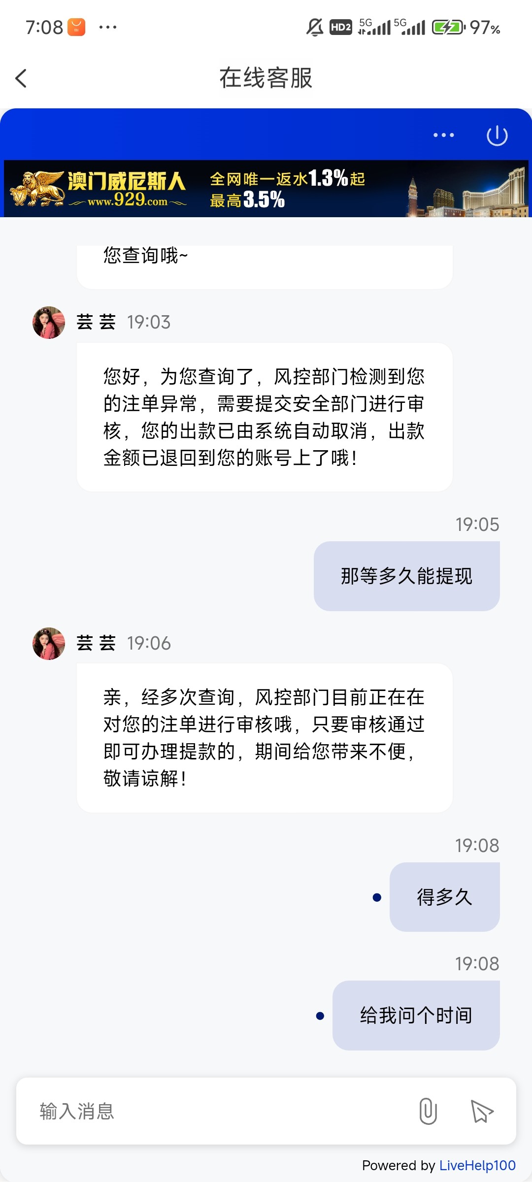 之前搞到八千多也是这样,然后一直审核,输到五千不给提,最后输到五百给出了
