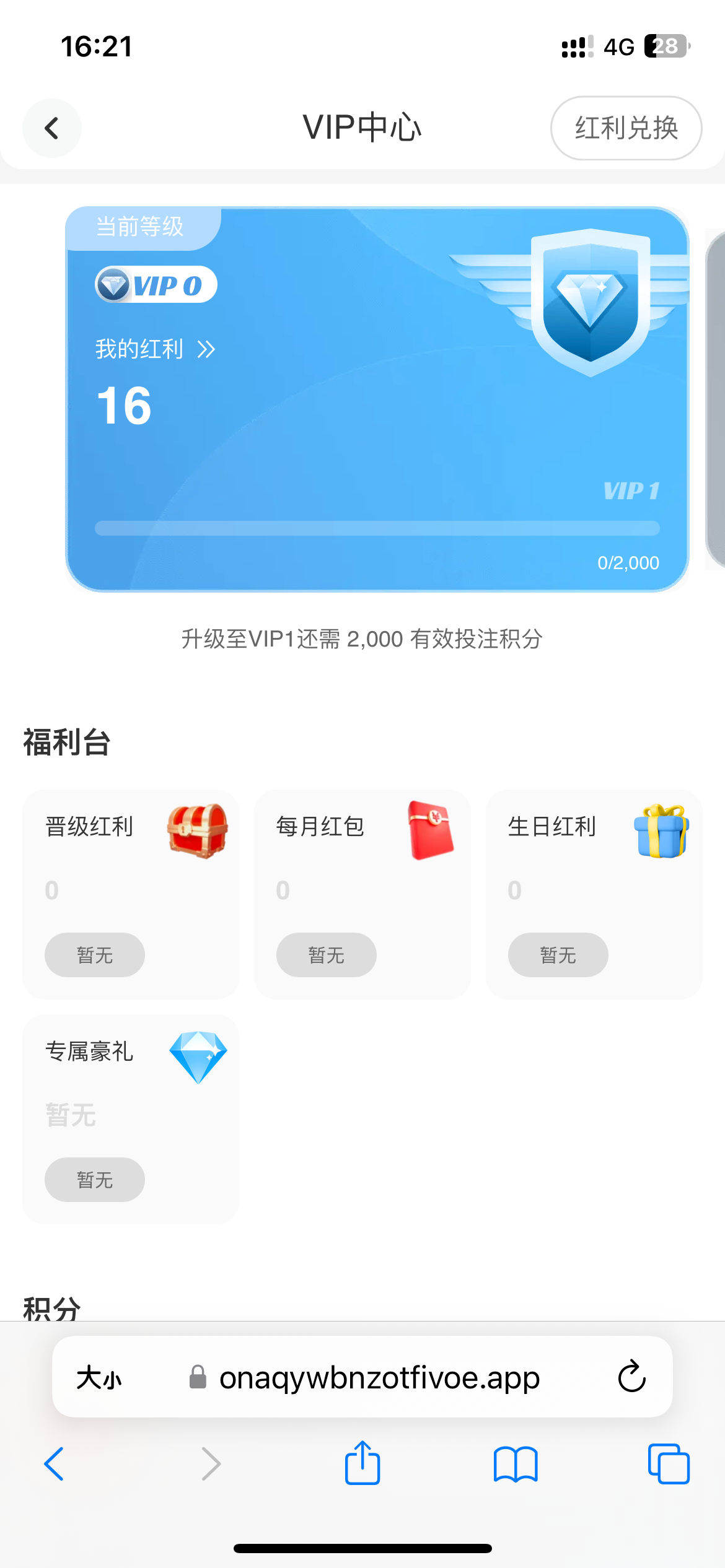 今天打电话来的说有啥彩金,以前玩过他们的1➕1,问客服他说有16红利,点击我的,vip哪里,你们自己看看,应该以前充值过的才有红利兑换,3个号有2个,网址2121.com