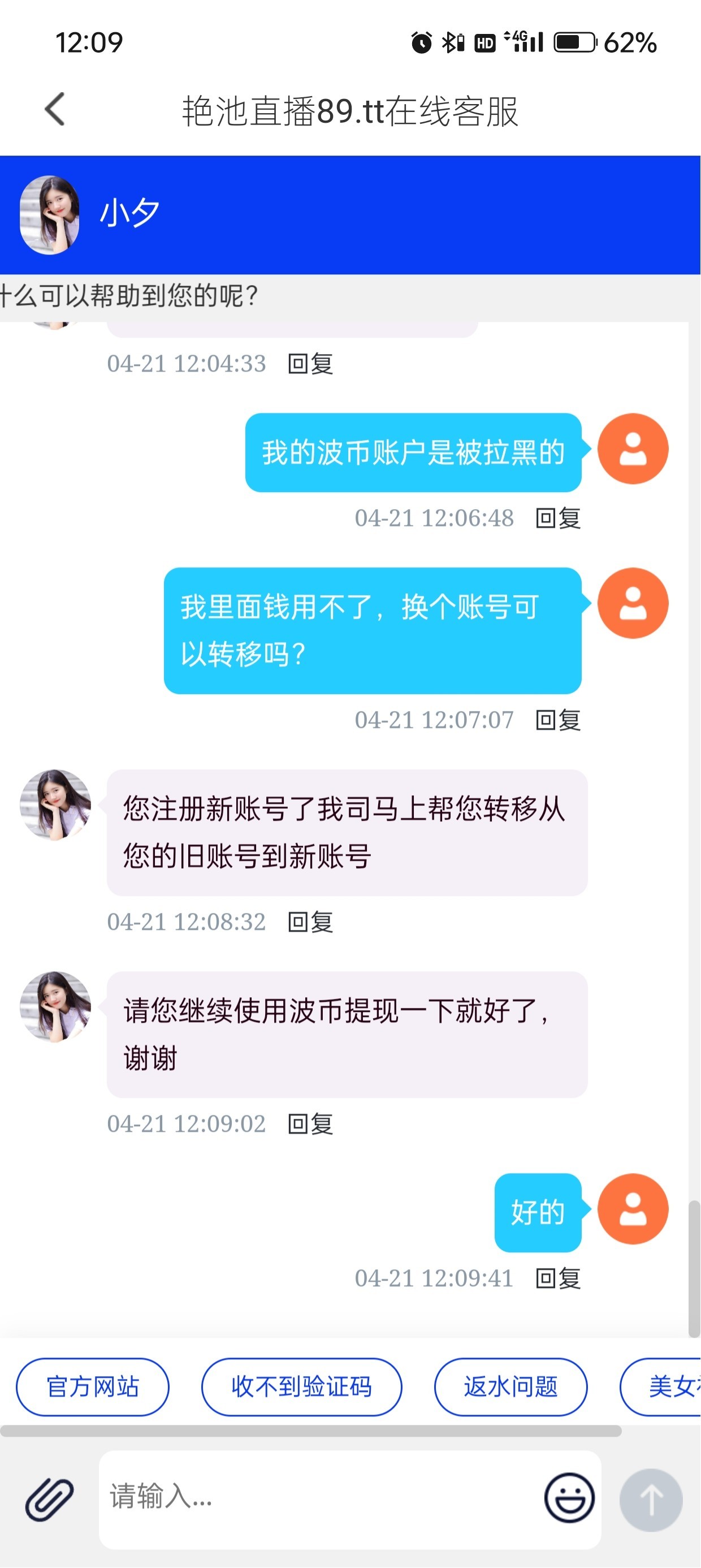 没用的,我的也是这个台子,波币里600多给我拉黑了,每次打电话说送彩金我就骂