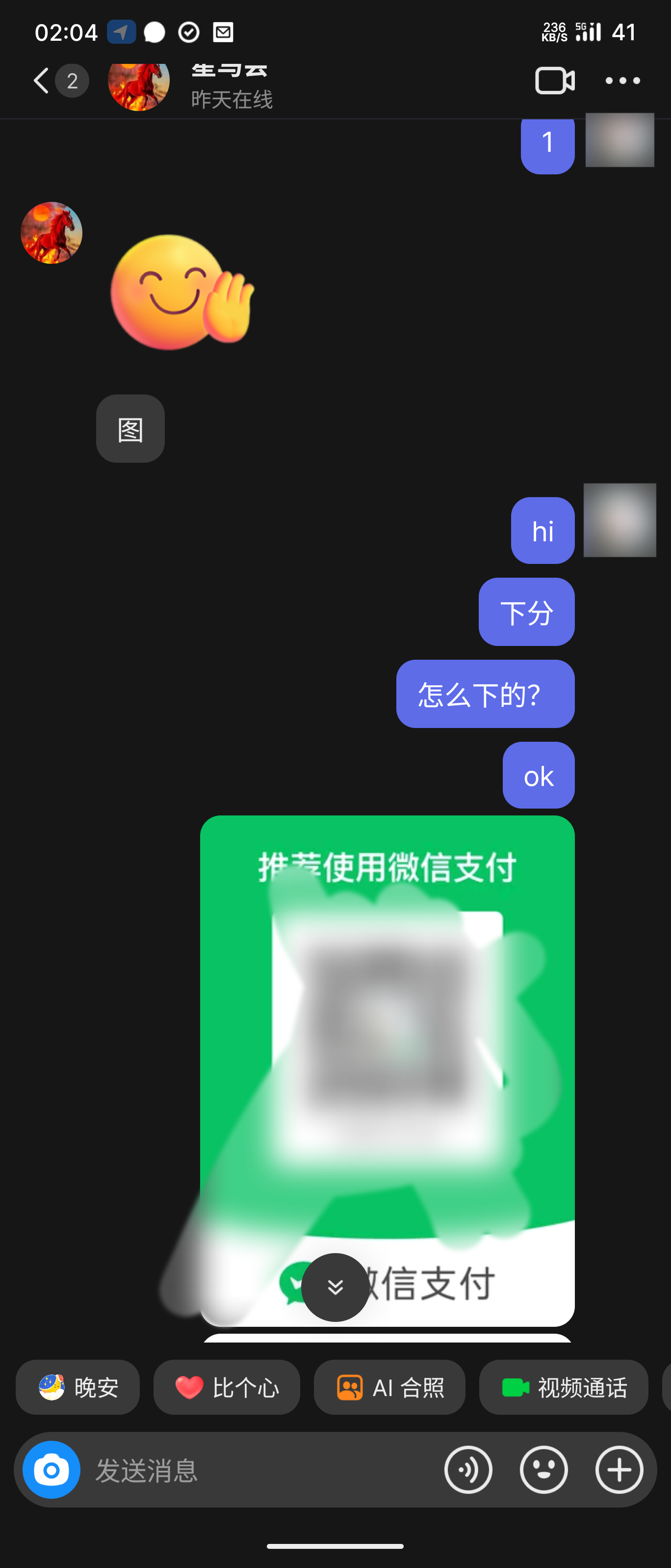 我说我微信被风控了,收不了款。然后就把我拉黑踢出房间了
