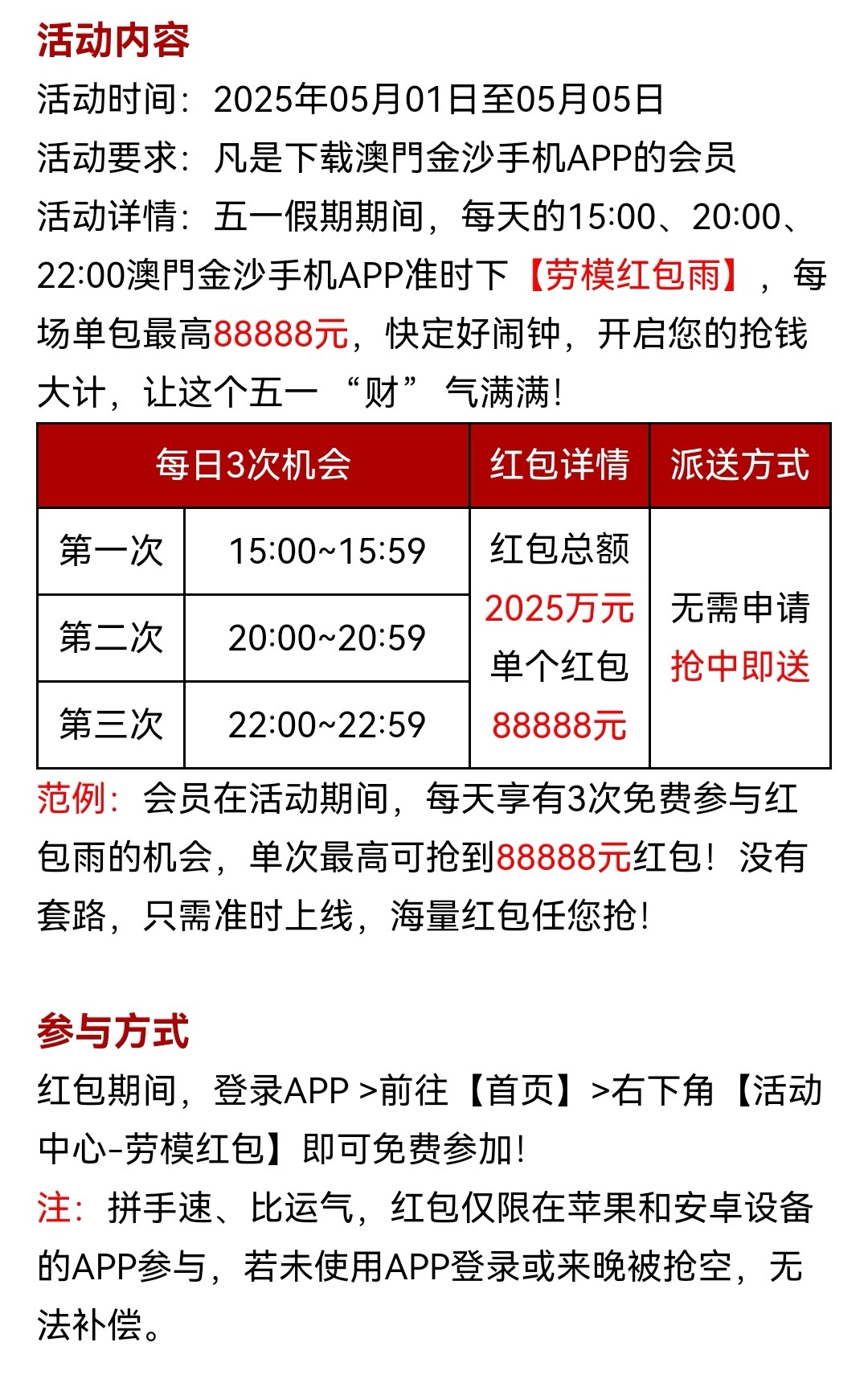钱能系五一红包彩金