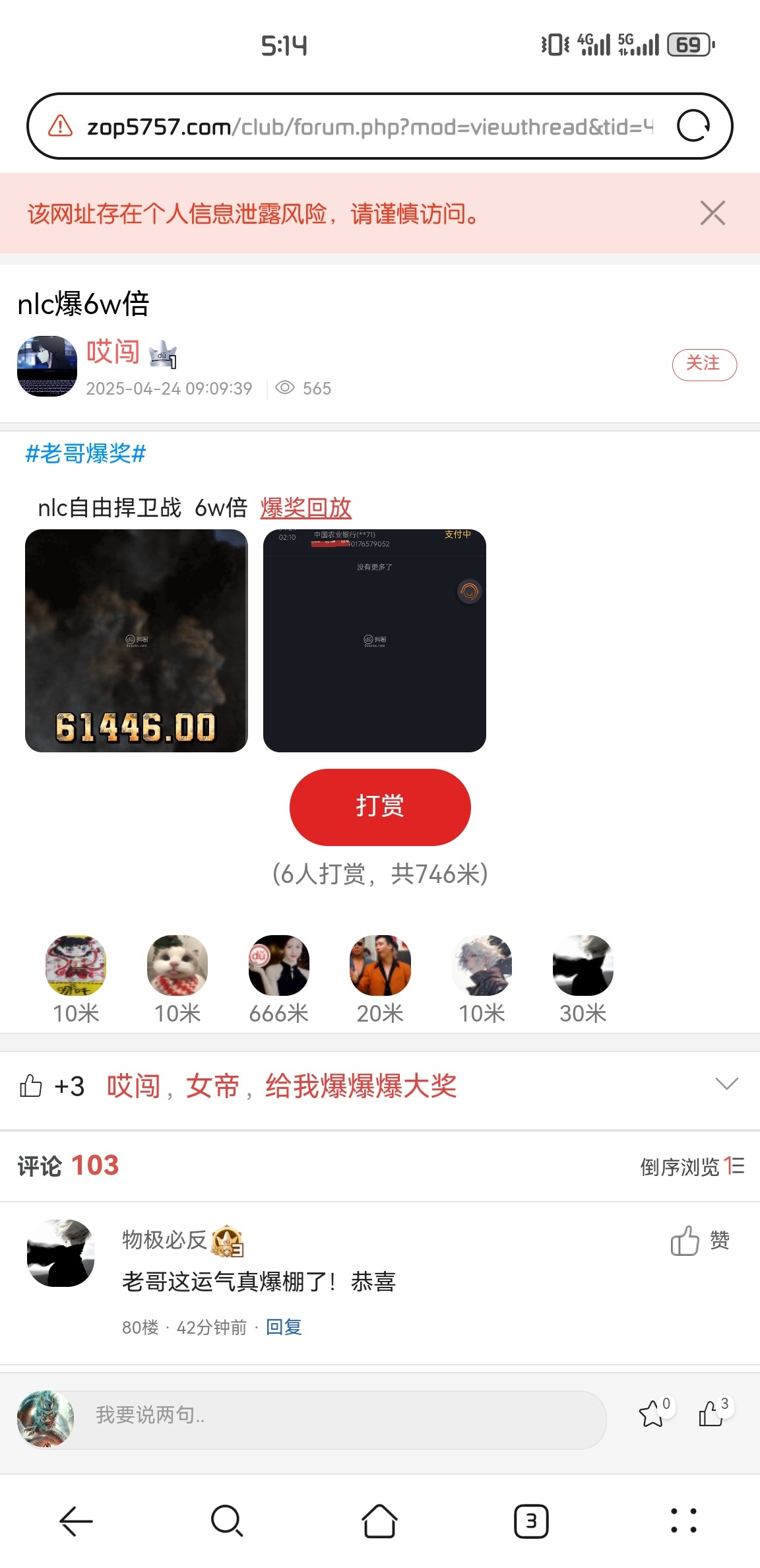 申请一个哥,沾沾喜气,什么游戏6万多倍,第一次看见