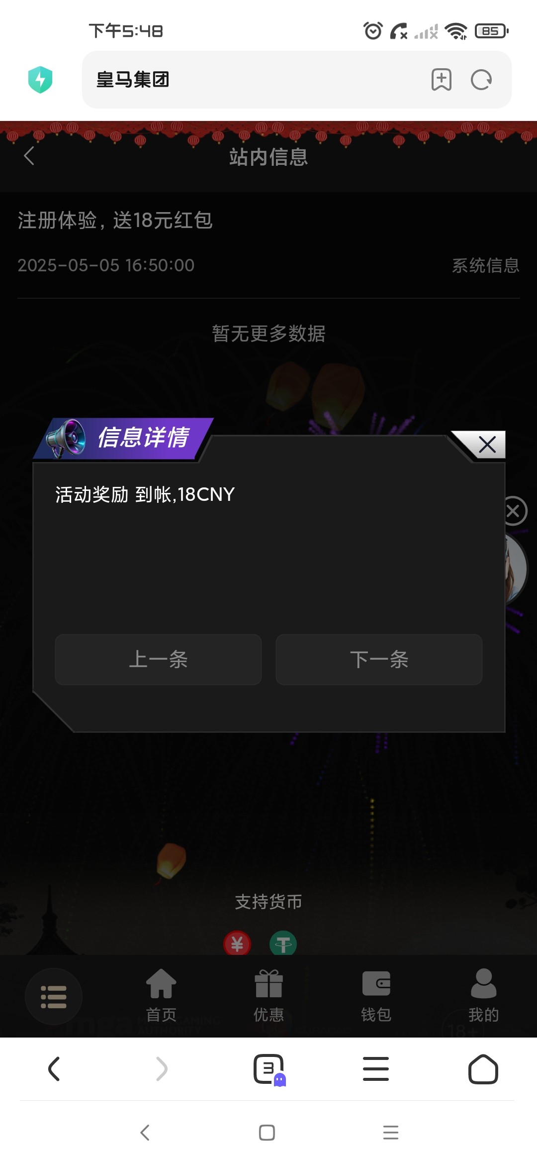 这种台子,小心盗你币,这种绑定钱包给彩金的,直接不要!