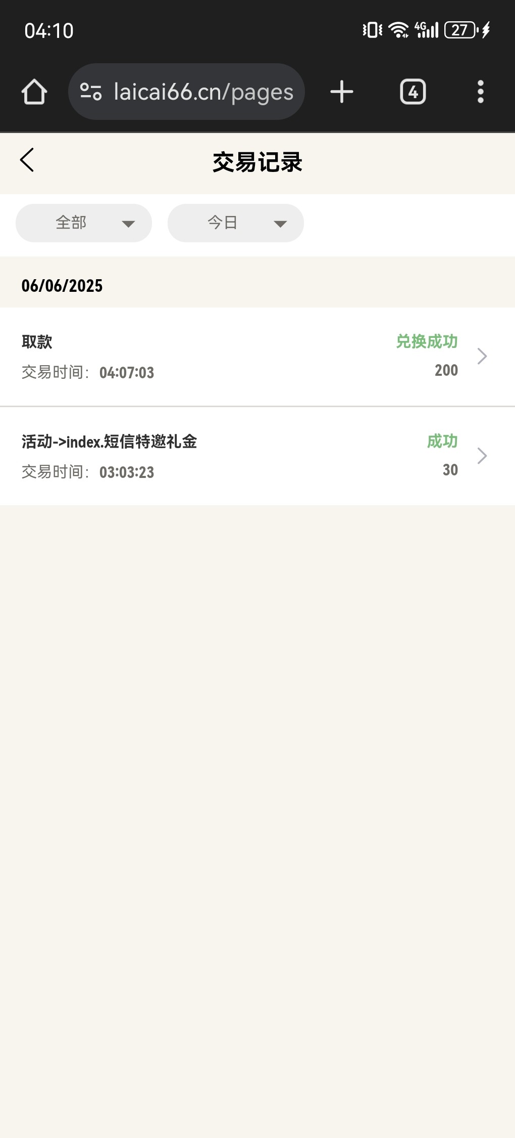 已到账100