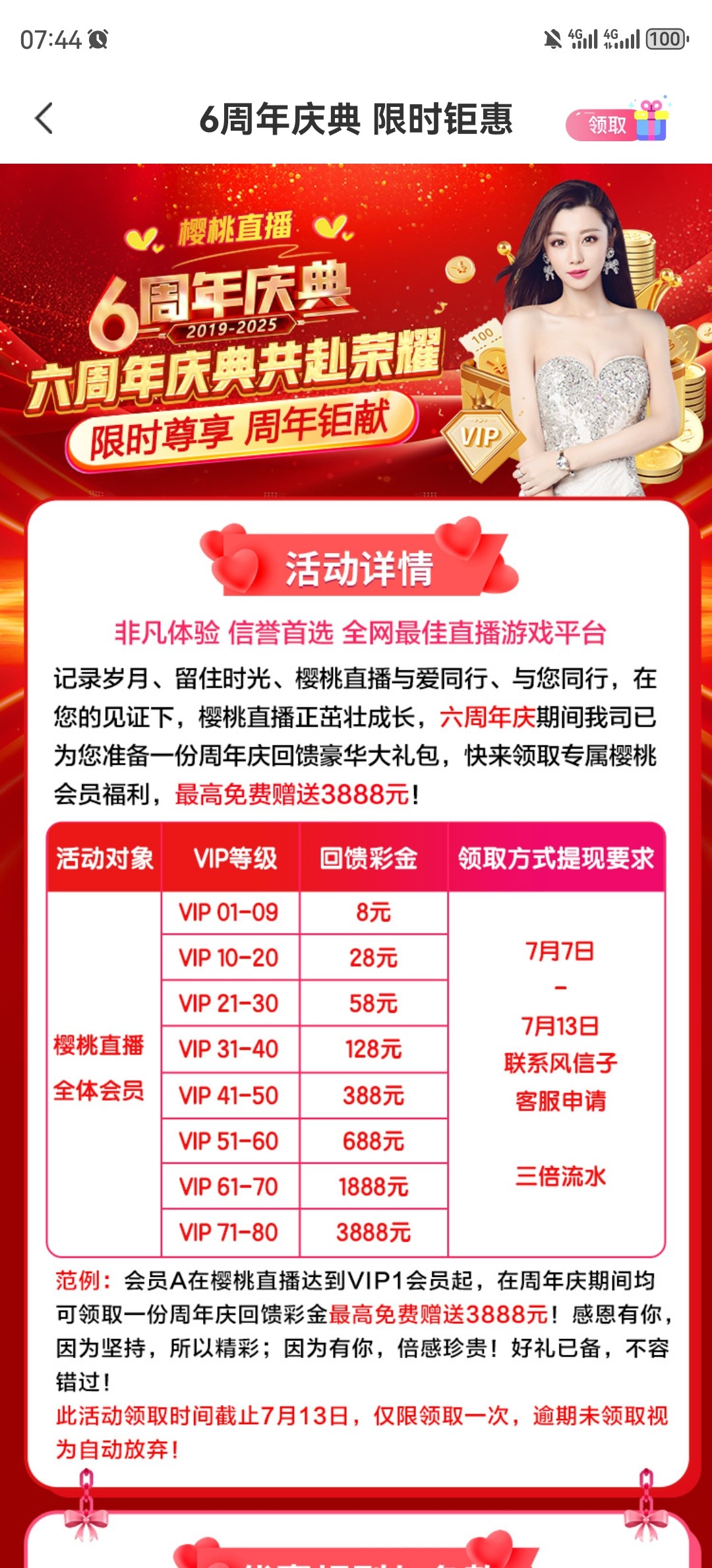 樱桃直播六周年彩金