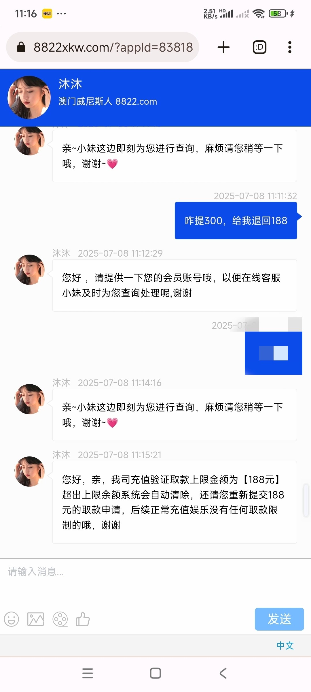 提现100退回,叫充值100打600流水才给提