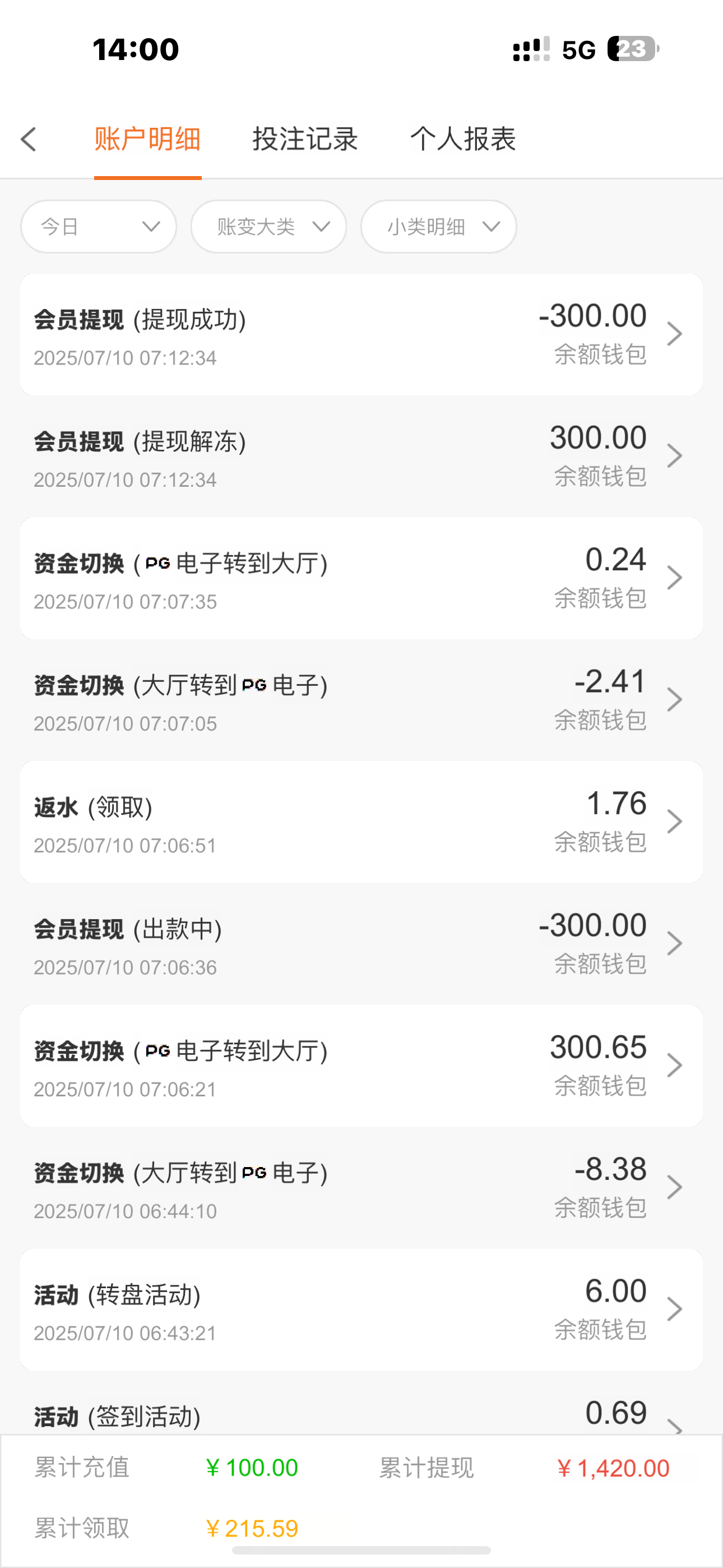 我也是刚注册赢了一点后面充100就只打110-120的流水 充钱是进不去免费一直空拉的 送的彩金就能打出来 一提现就罚10倍流水 流水打够了余额也清零了