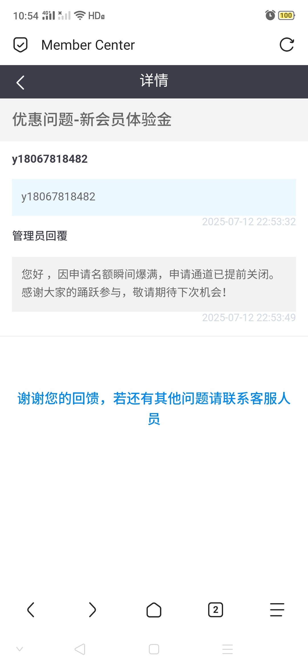 申请方式,点我的-意见反馈,选其他-主题 新会员体验金 即送57元,内容填账号就行