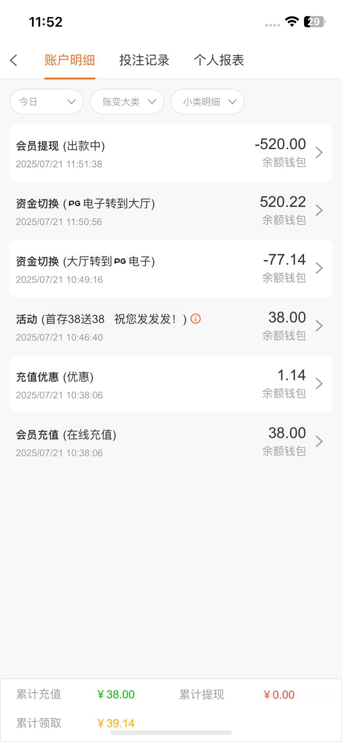 怕完你们了,这么多赌神,现在送的彩金,58-68-38一堆,我是一个打不出来