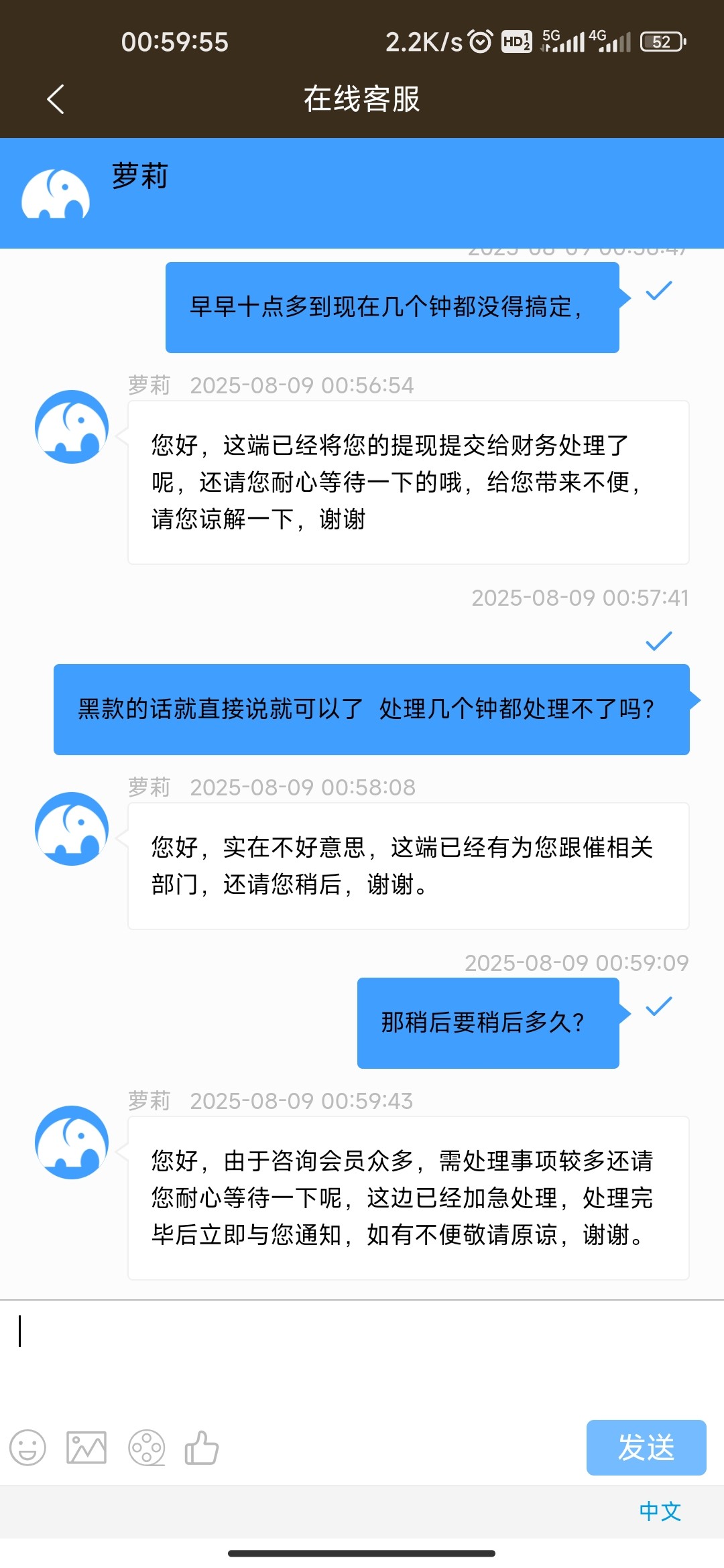 就v5号,一直正常玩,今晚冲一张提了五张显示到账,但是钱包没到,质询一直这样  是给了吗