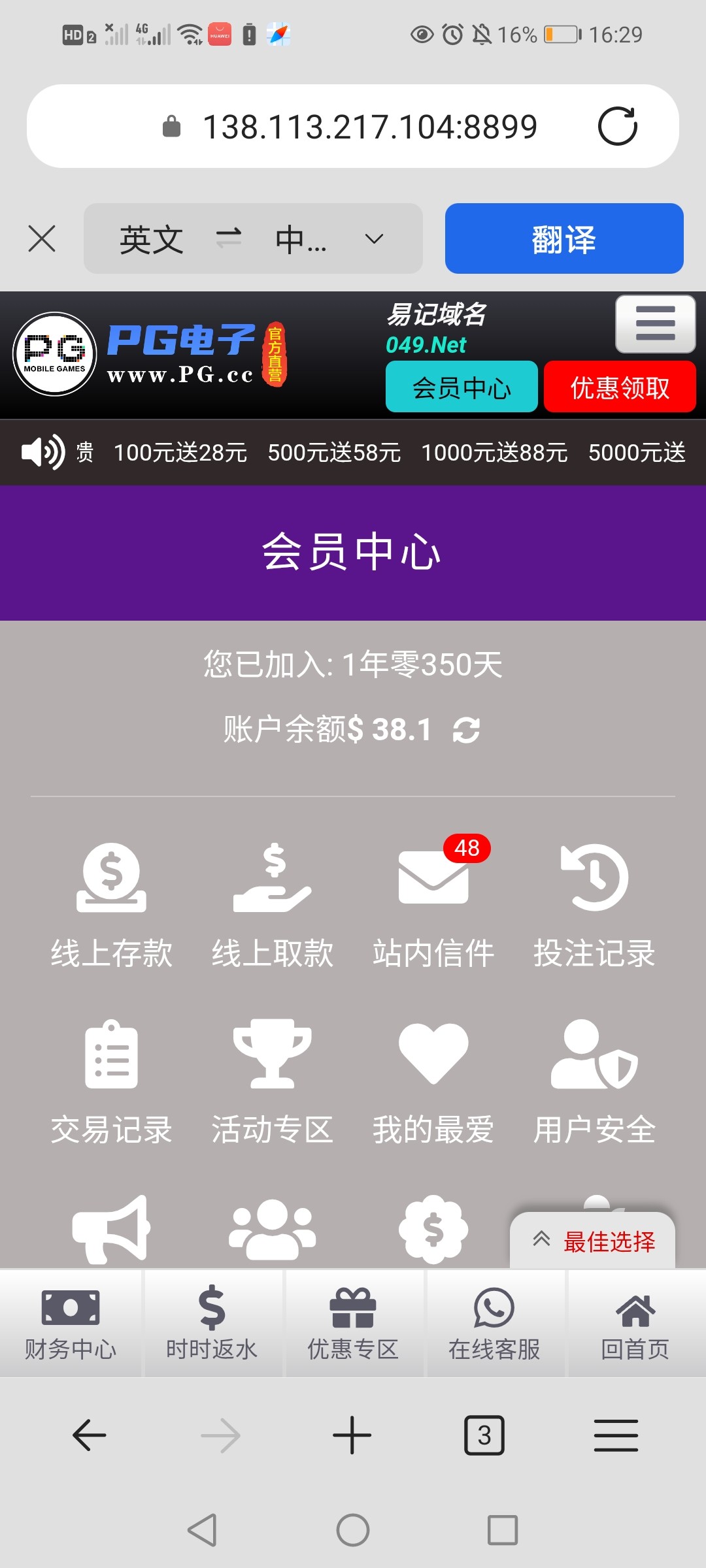 PG直营站電访彩金送38