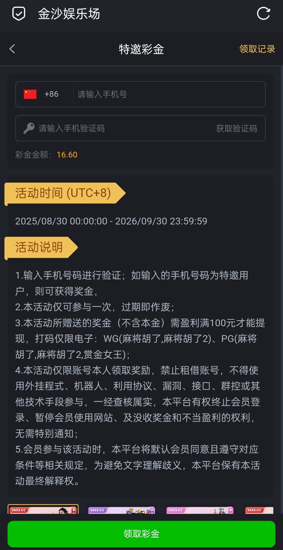 金沙3833特邀送16彩