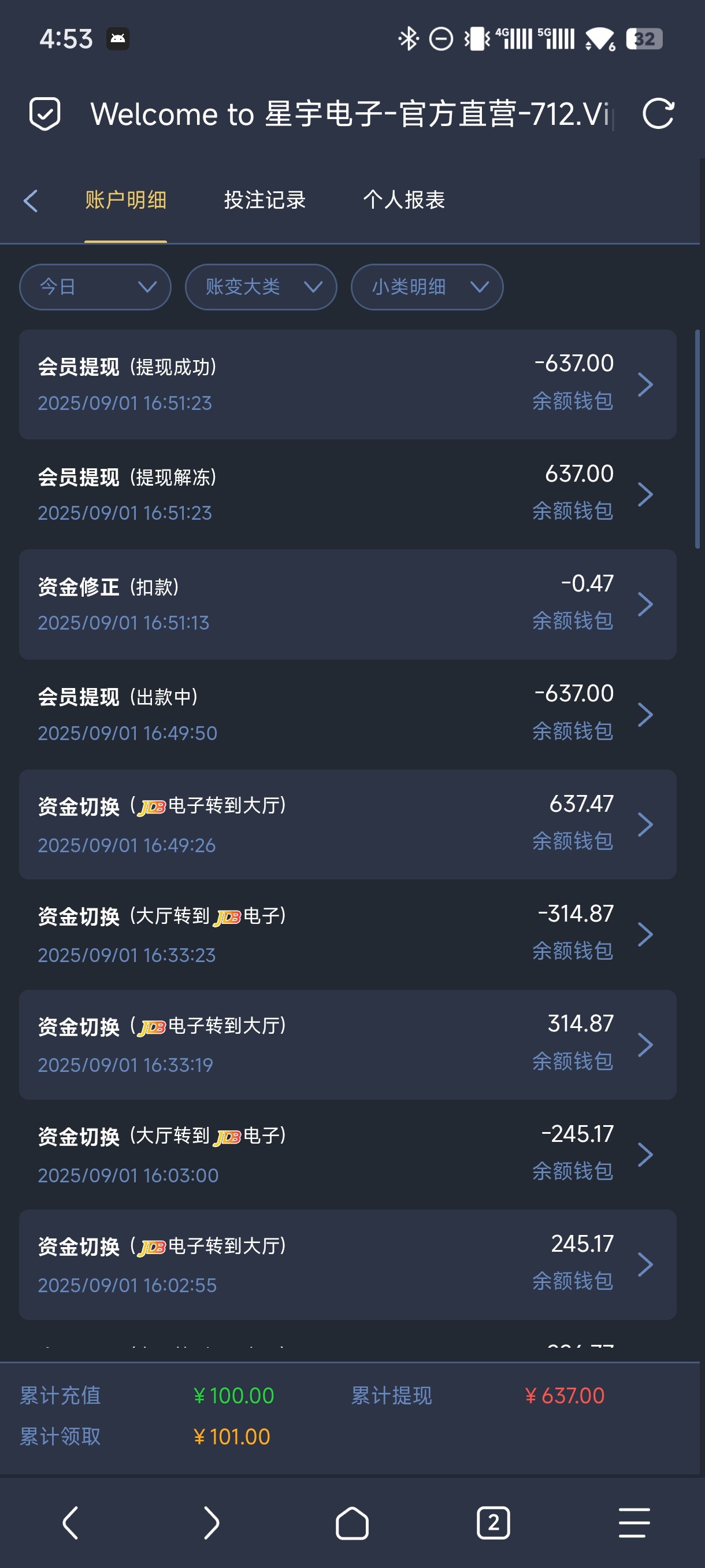 nnn367 为什么充值100到账95??