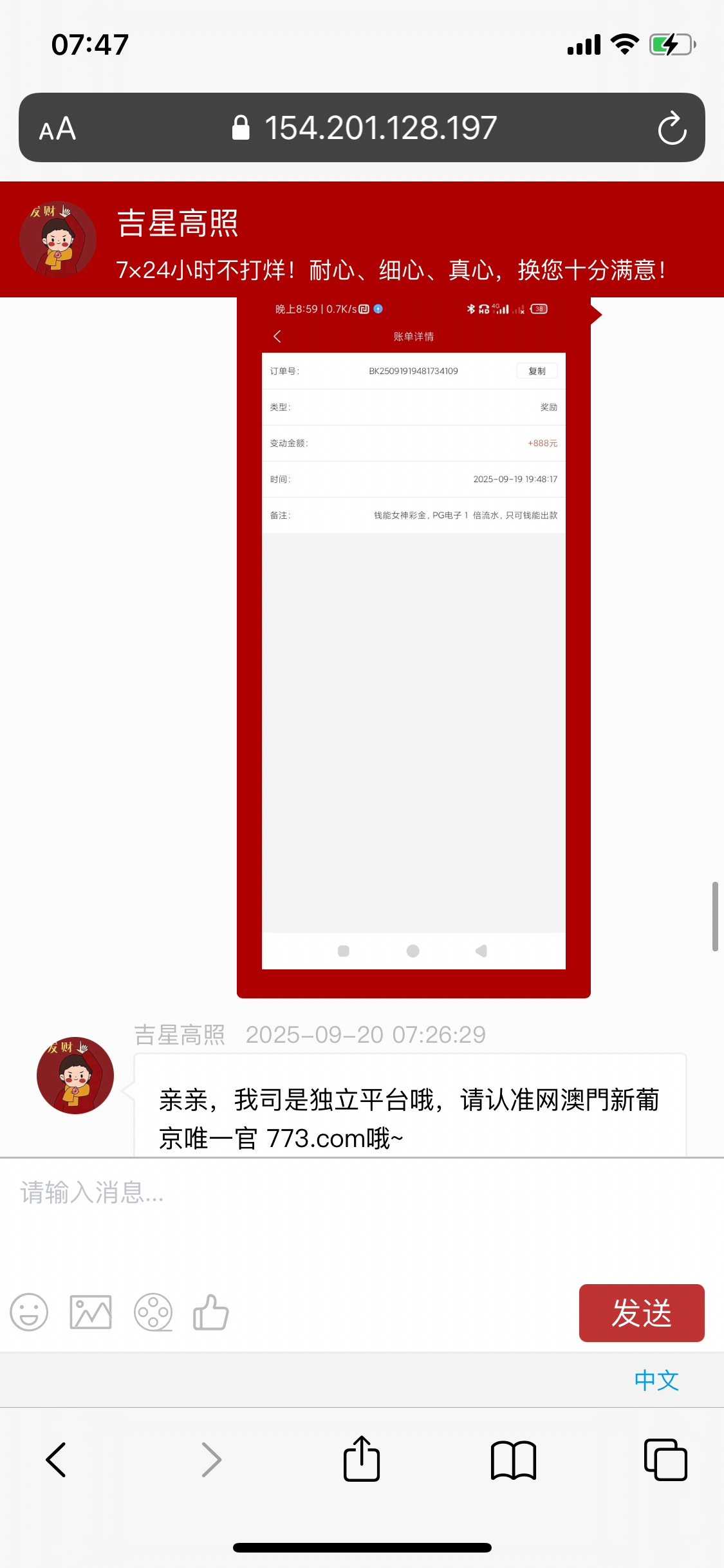 773最垃圾,我存500打电子3倍流水不到输光了,第二天发个站内信说我流水过低,不给我钱能存款奖金,妈的,都输光了还说我流水低,妈的就应该一杯水出款还不会全部输光。