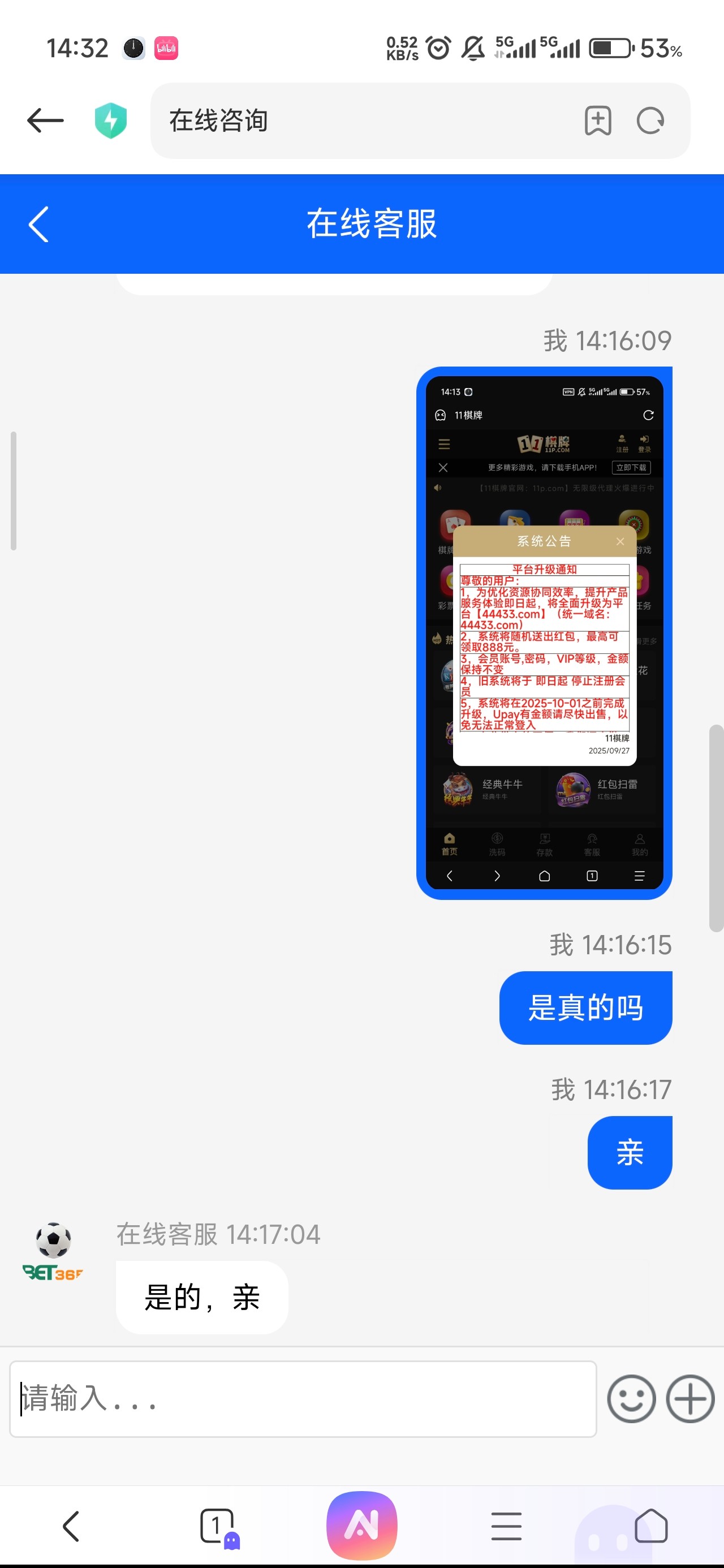 原来的11p棋牌(11p.com)升级到bet365(44433.com),有号的可以去要升级红包。