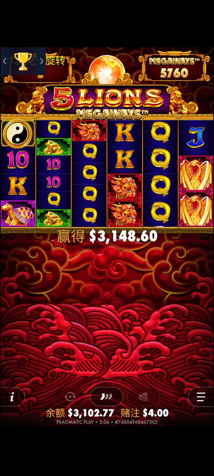 是买的。昨天第一次给我来了pp满背。5金狮。买了200u的中了一万u