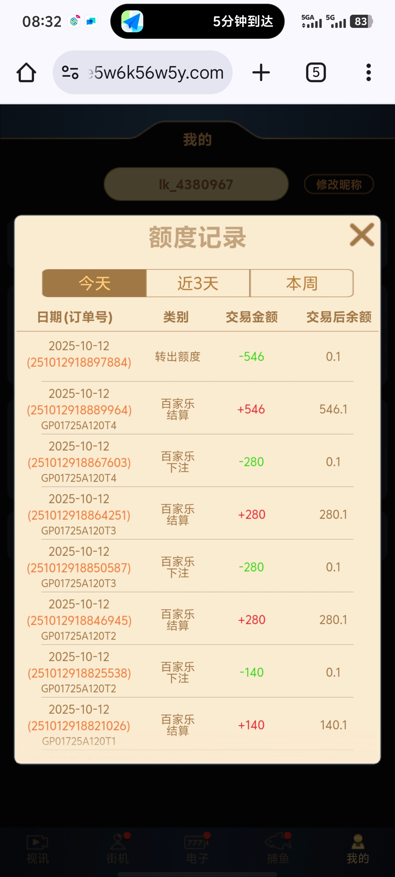 8块周彩金1块签到百家乐过6关,然后体育3串1中了,9块变3500,提现3300回点血
